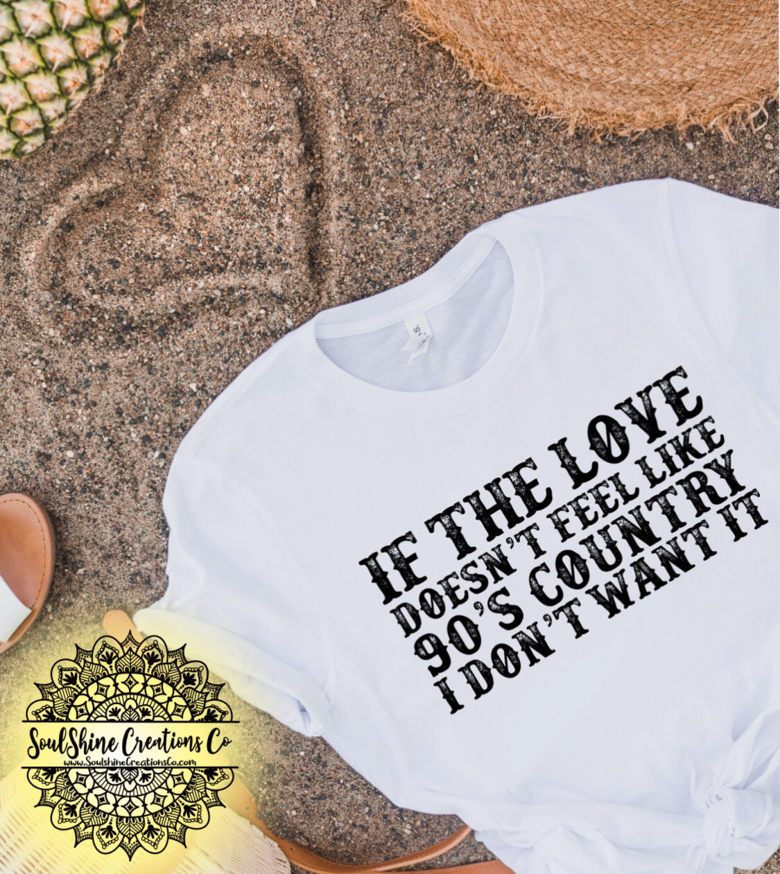 If the love doesn’t feel like 90’s country I don’t want it shirt- (Color of shirt in photo is White, for reference)