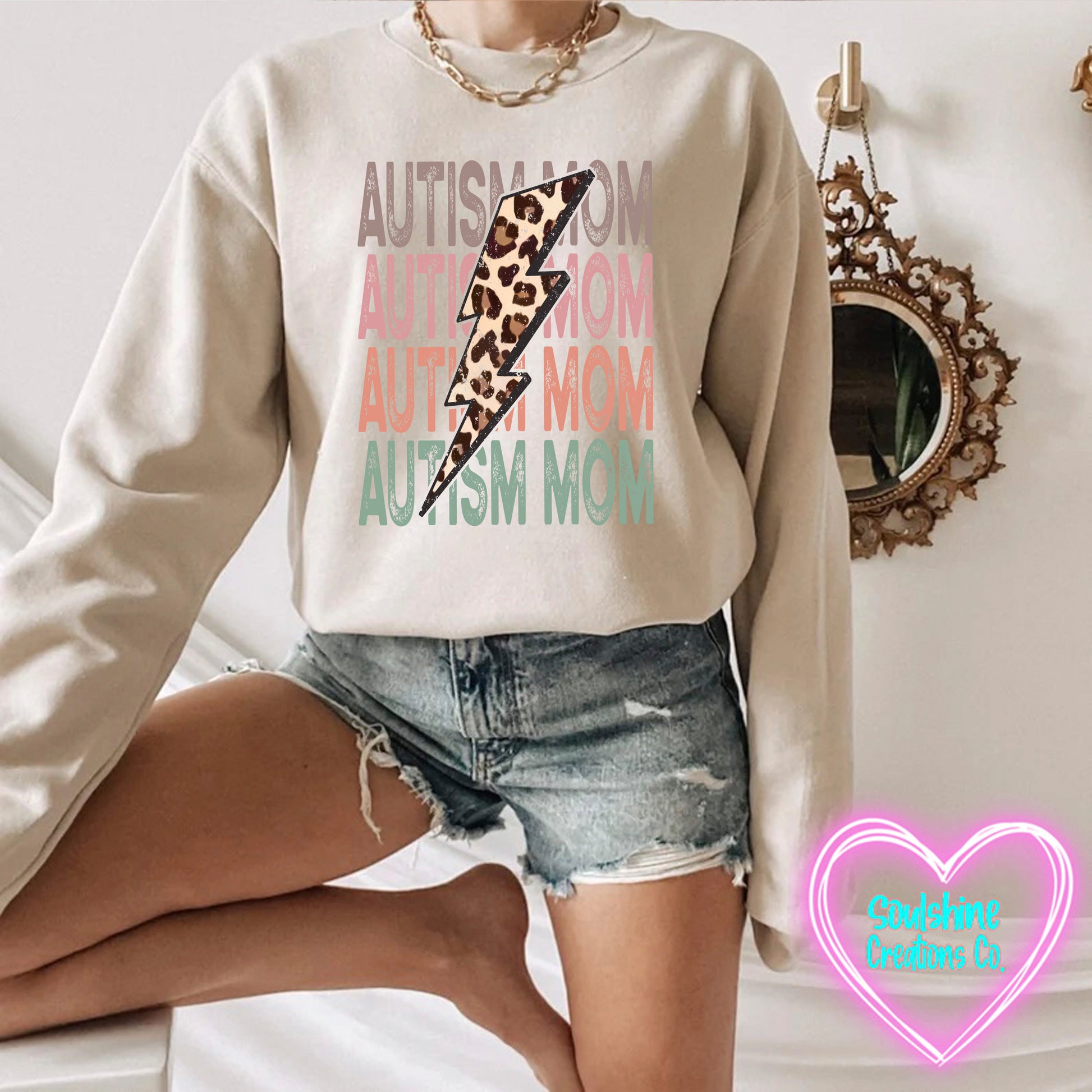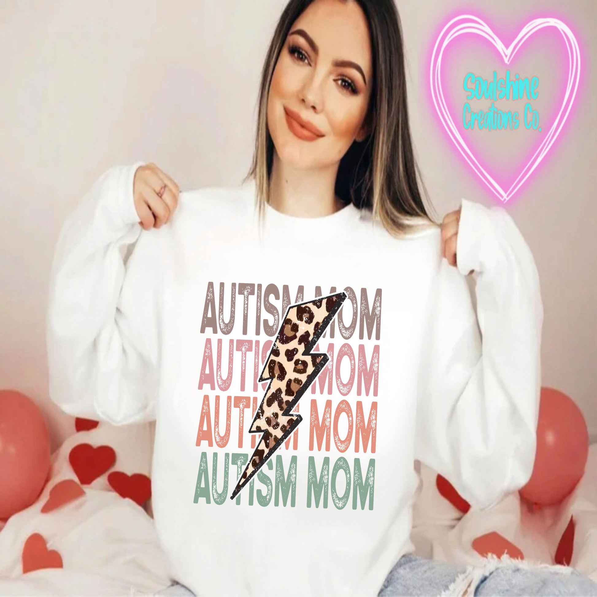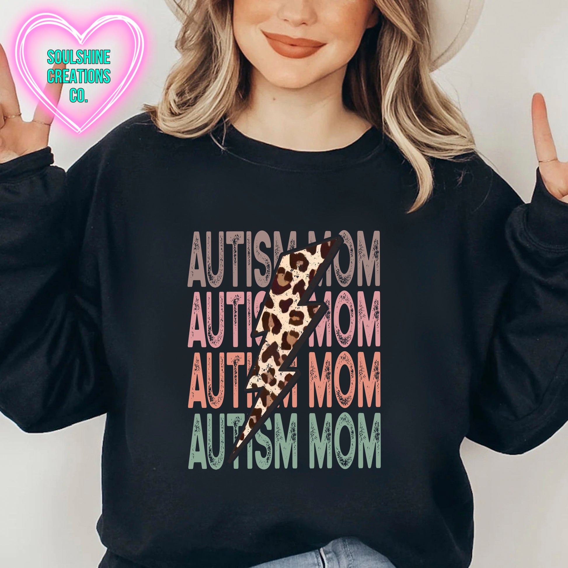 Let the world know you're a fierce autism mom, ready to tackle any obstacle that comes your way. Strike a stylish pose and rock this one-of-a-kind sweater! Show your pride and style in this unique Autism Mom Sweatshirt featuring a leopard print lightning bolt!