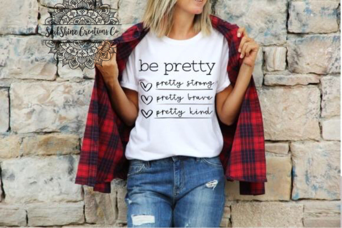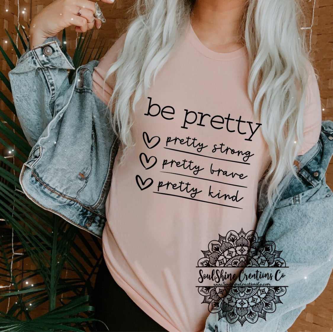 Be Pretty Pretty Strong Pretty Brave Pretty Kind- (Color of shirt in photo is Pink, for reference)