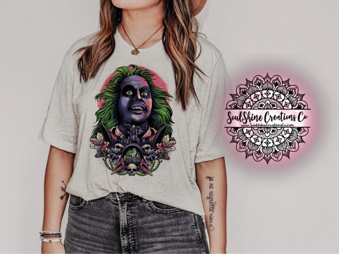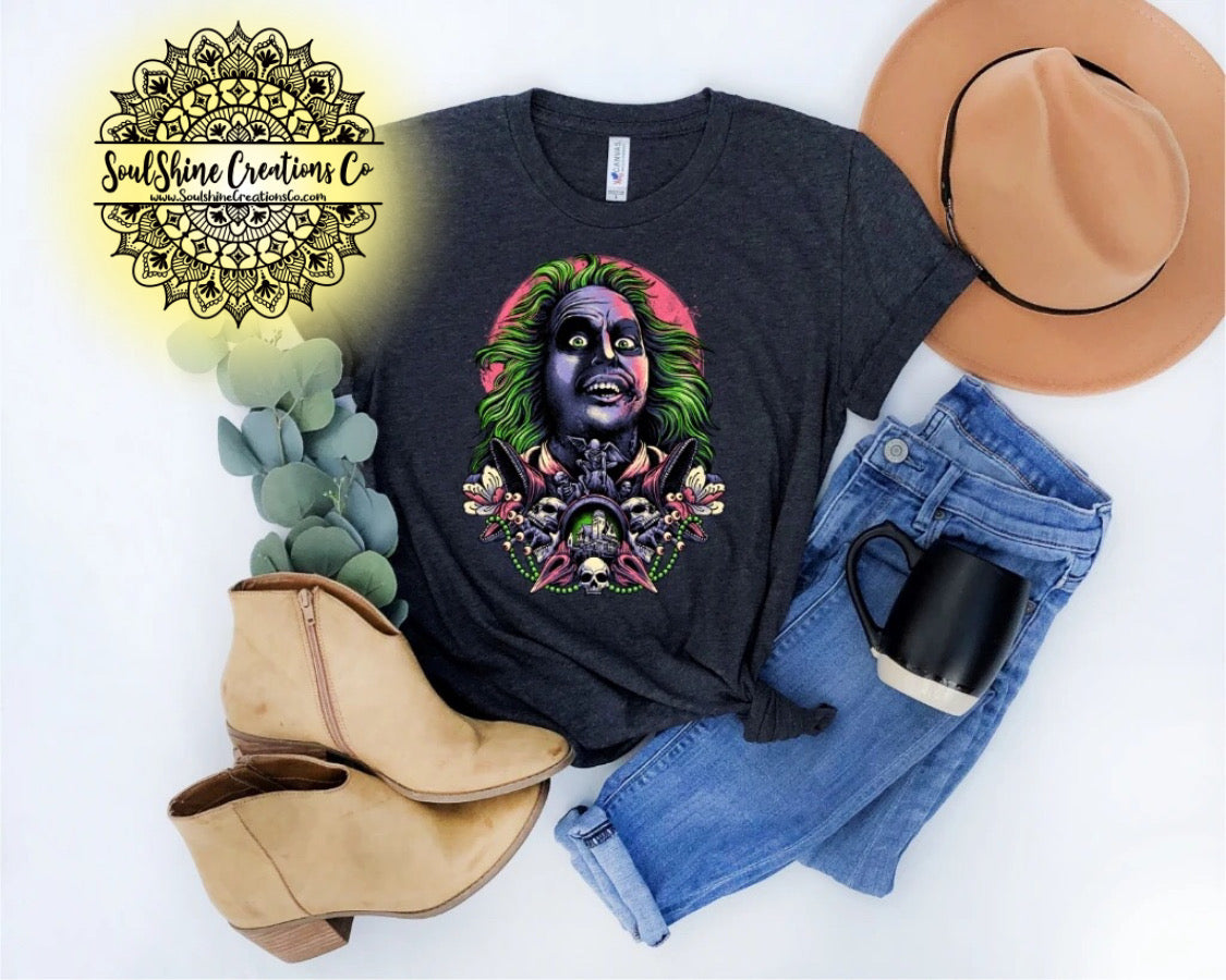 Beetlejuice Shirt- (Color of shirt in photo is Ash & Black, for reference)