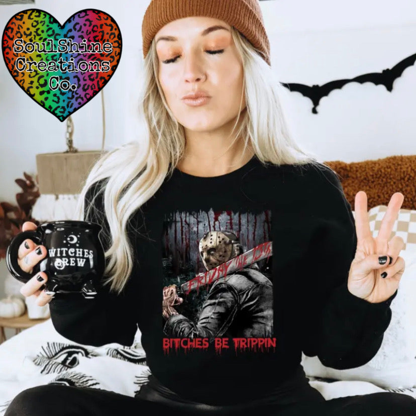 Bitches Be Trippin' Tee or Sweater is perfect for any retro-loving Halloween enthusiast! Show off your spooky style in this unique design - sure to make you the life of the party!