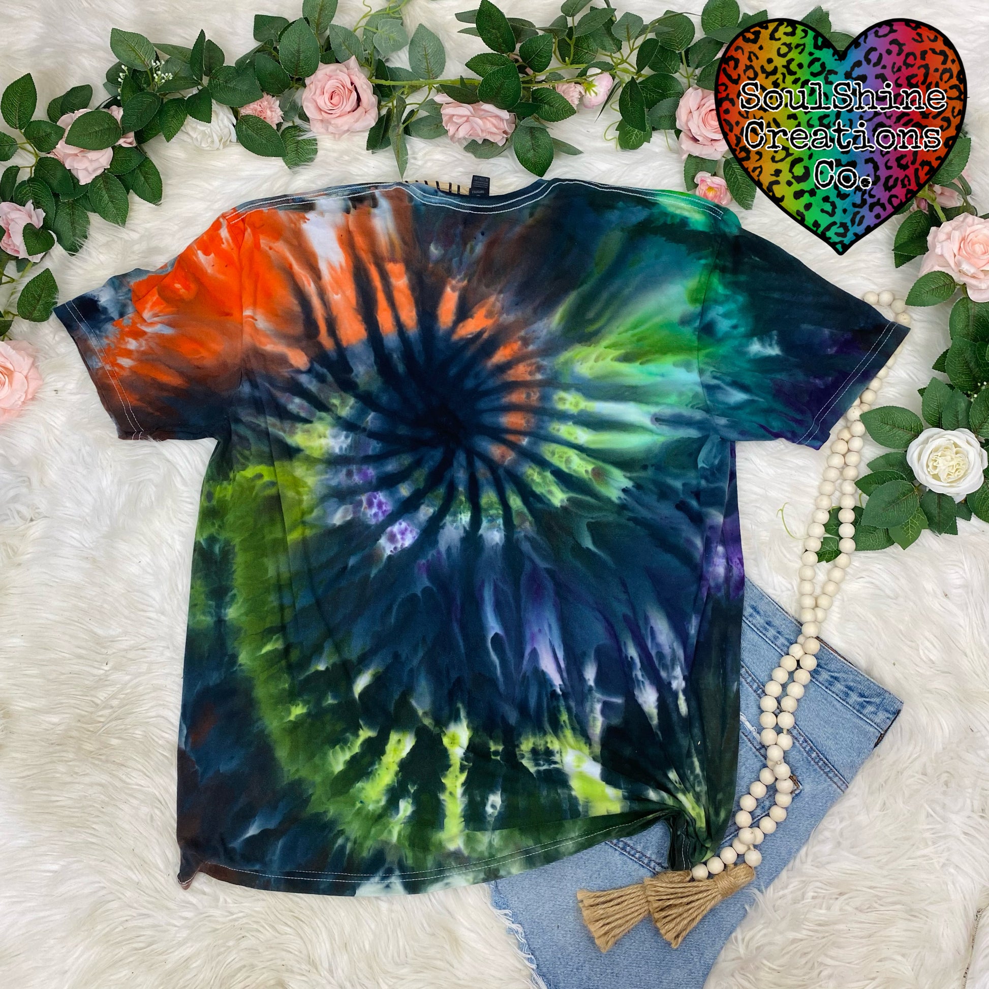 PLEASE NOTICE THAT TIE DYEING IS AN UNPREDICTABLE PROCESS. NO TWO PIECES WILL BE EXACTLY THE SAME. PLEASE EMBRACE THE UNIQUENESS OF EACH HAND DYED PIECE.