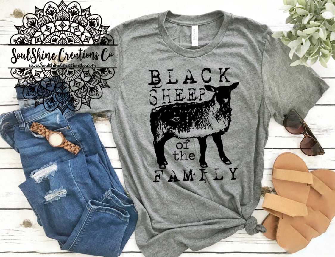 Black Sheep of the Family- (Color of shirt in photo is True Royal, Heather Sunset, & Heather Military Green, for reference)