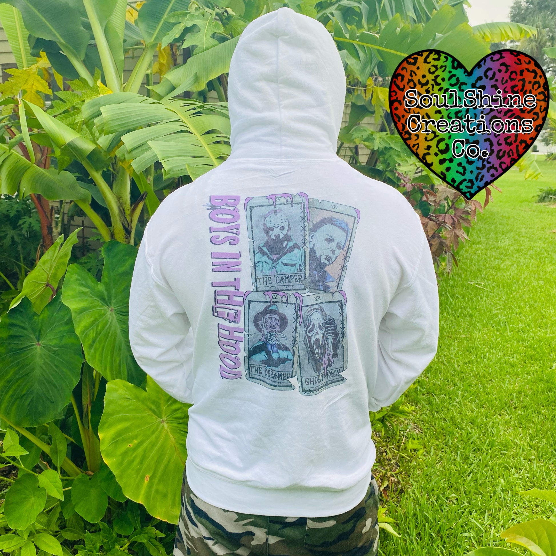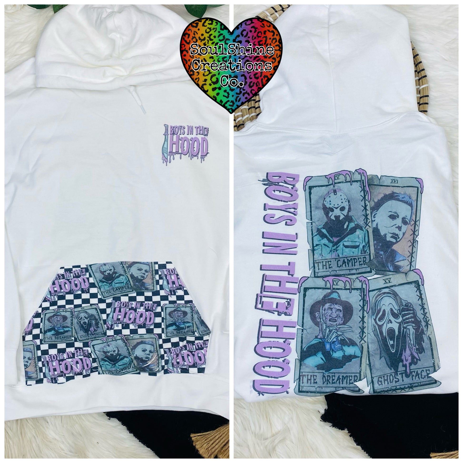 This Boys in The Hood Sweater is perfect for any retro-loving Halloween enthusiast! Show off your spooky style in this unique, classic design - sure to make you the life of the party!