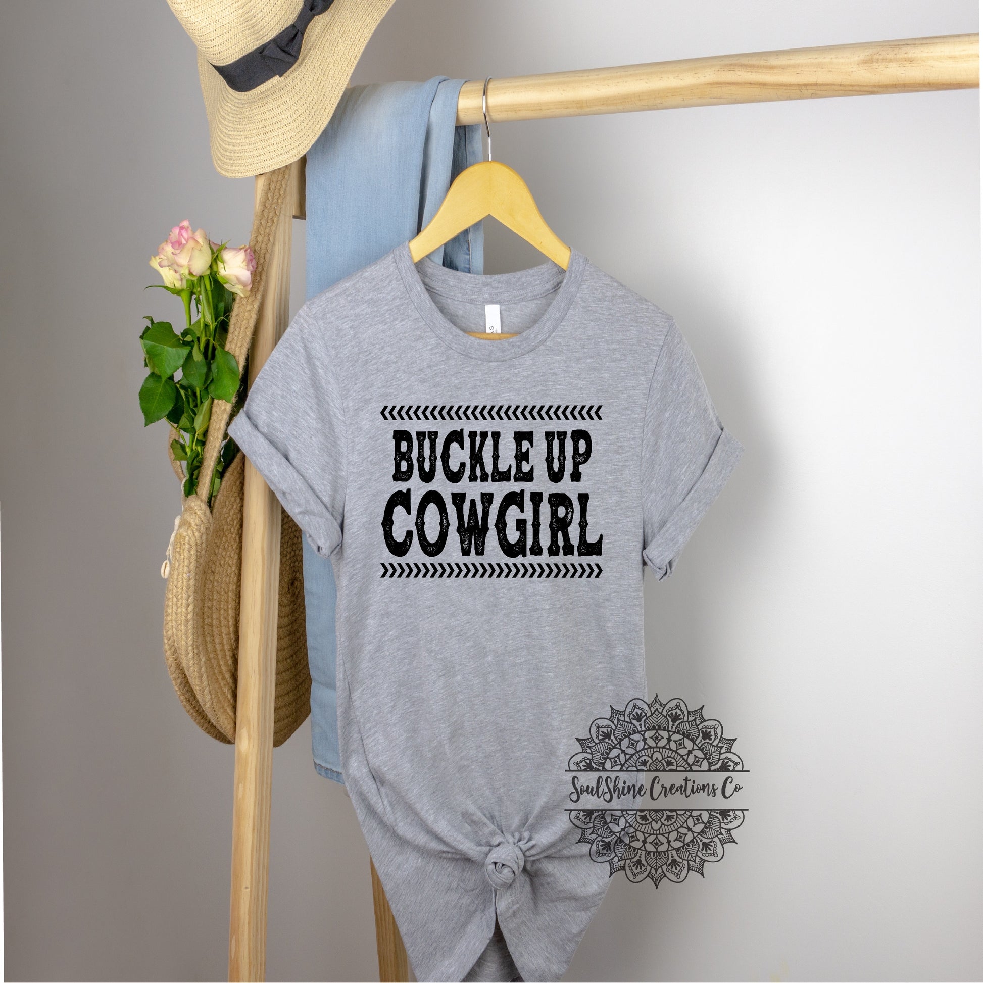 Buckle up cowgirl - (Color of shirt in photo is Athletic Heather, for reference)