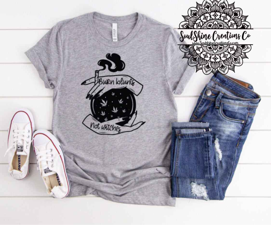 Burn Blunts Not Witches- (Color of shirt in photo is Athletic Gray Heather, for reference)