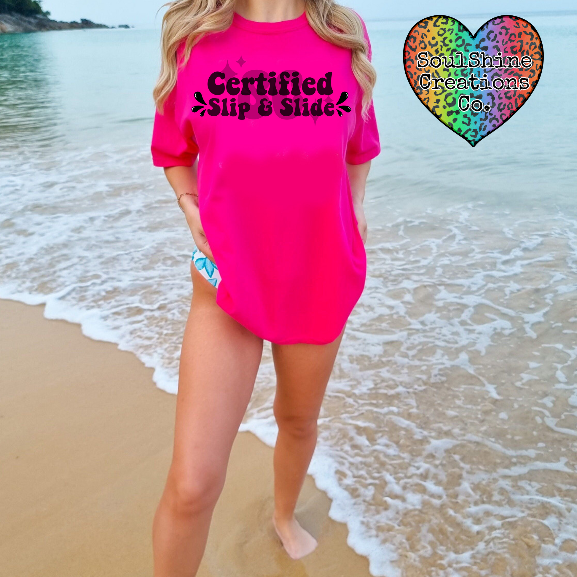 Certified Slip & Slide Shirt - (Color of shirt in photo is Fuchsia & Black, for reference)