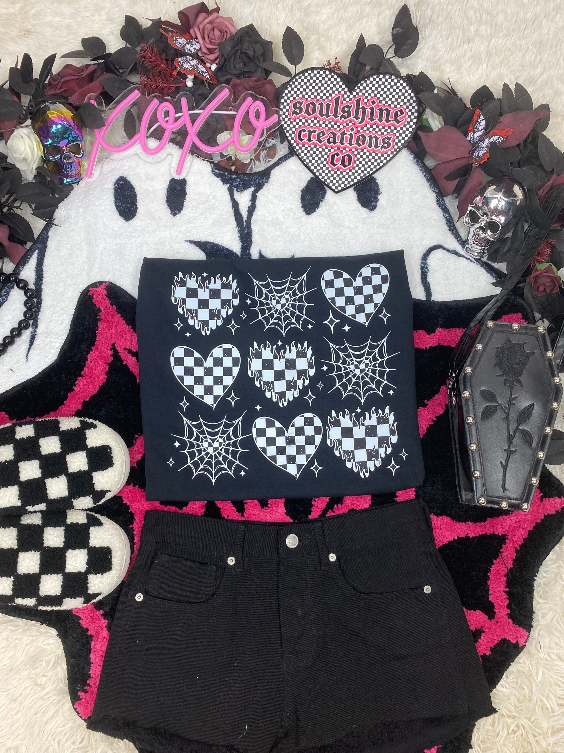 Checkered Spiderweb Coquette Tee or Sweater-Edgy Alternative Vibes