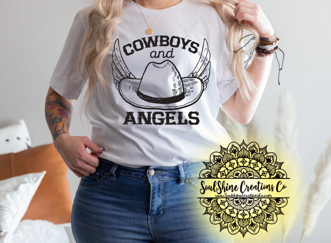 Cowboys and Angels shirt- (Color of shirt in photo is White, for reference)