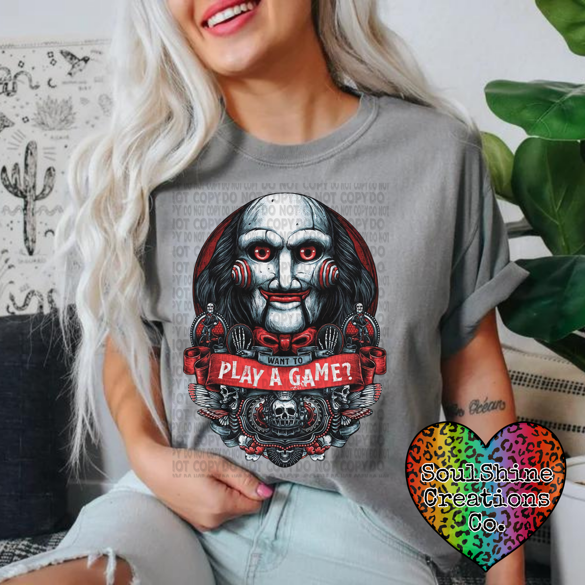 Want to play a game Tee or Sweater is perfect for any retro-loving Halloween enthusiast! Show off your spooky style in this unique design - sure to make you the life of the party!