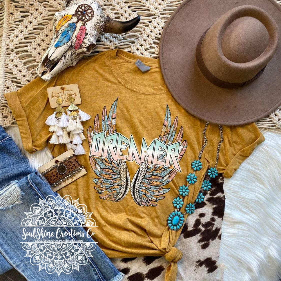 Dreamer Shirt- (Color of shirt in photo is Heather Mustard, for reference)