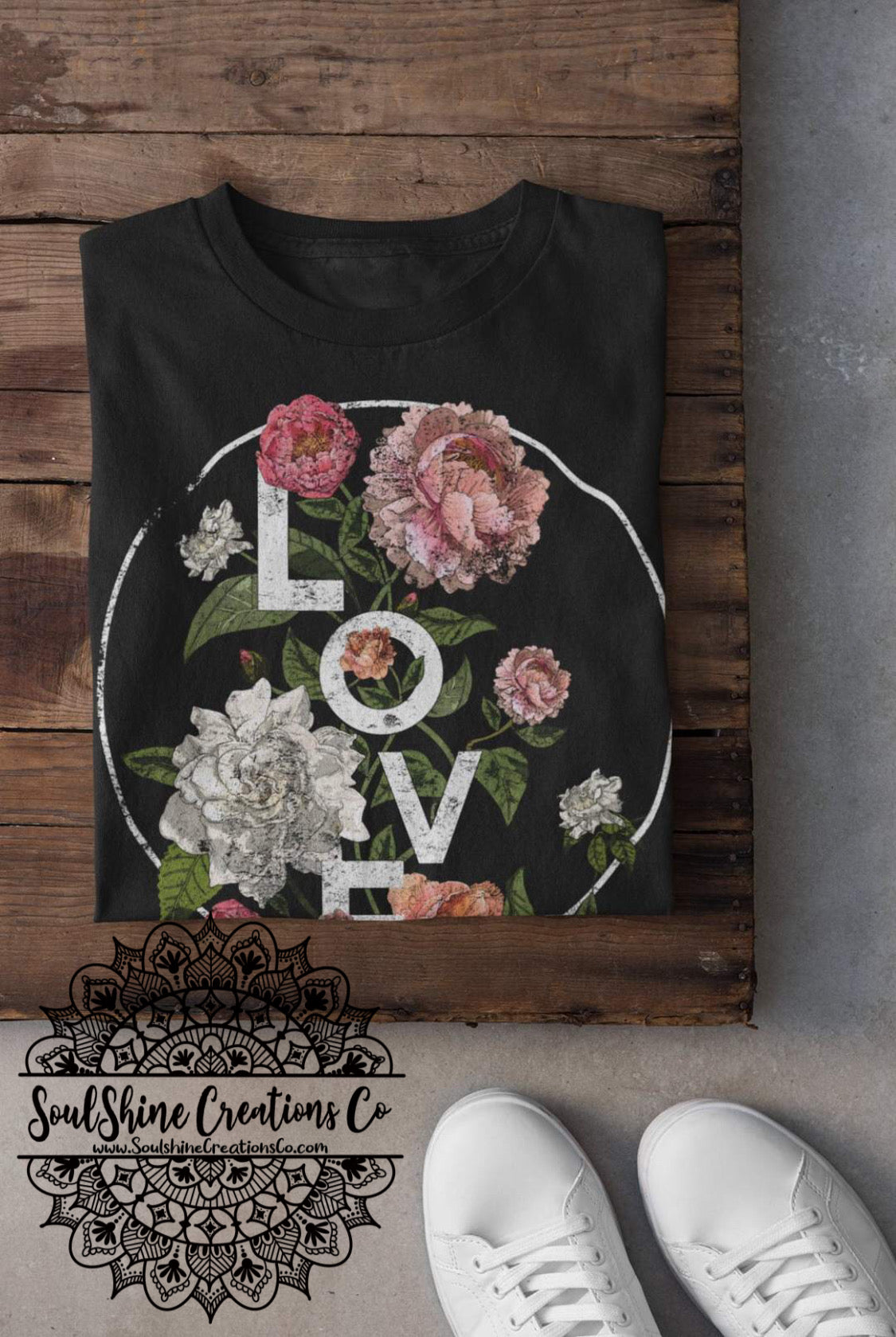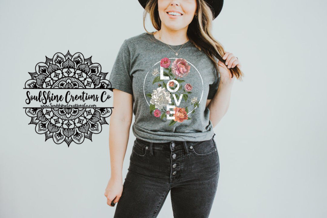 Floral Love Shirt - (Color of shirt in photo is Deep Heather & Black, for reference)