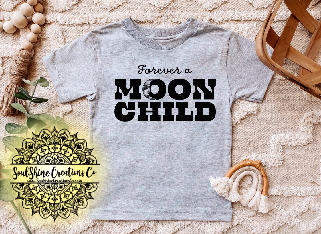 Forever a moon child shirt.(Color of shirt in photo is Heather Athletic Gray, for reference)