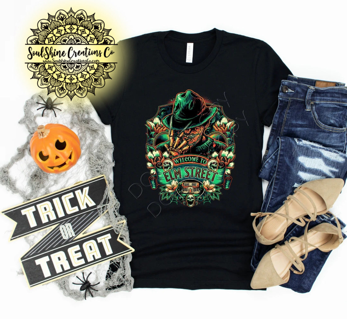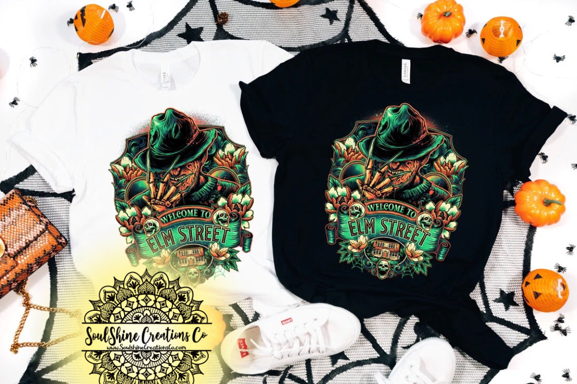 Freddy Krueger Elm Street Shirt- (Color of shirt in photo is White & Black, for reference)