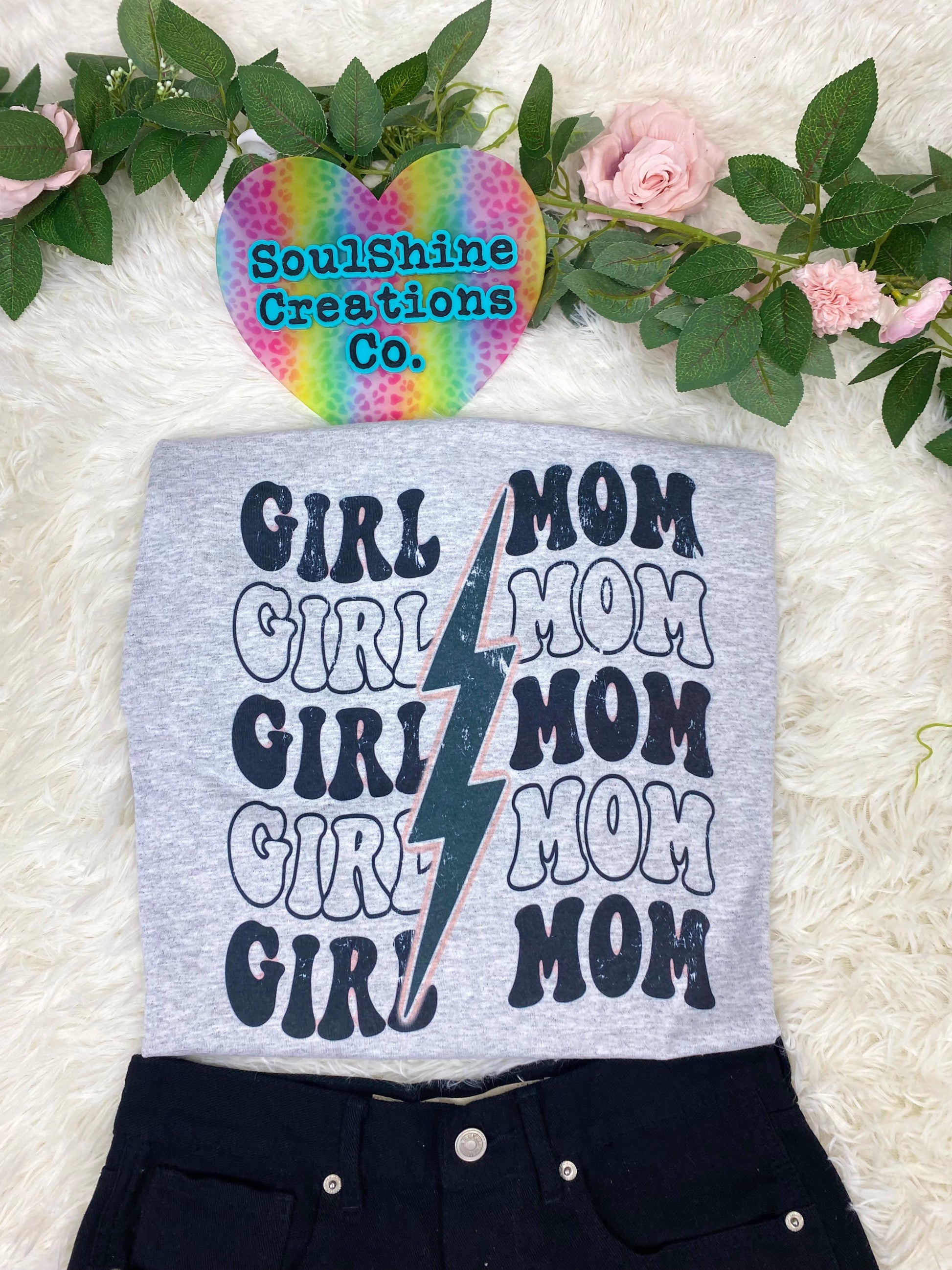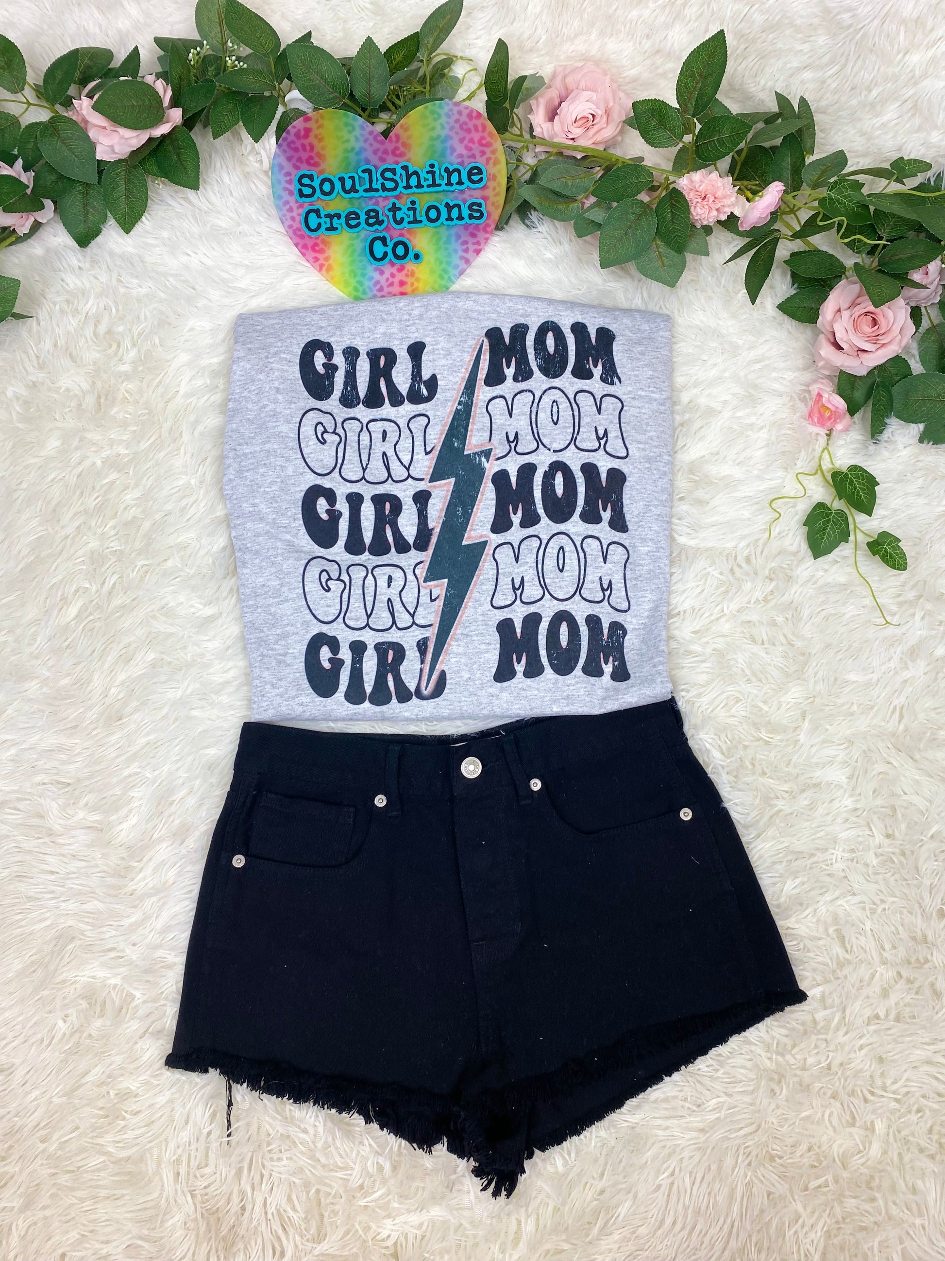 Girl Mom Stacked Bolt Graphic Tee Shirt