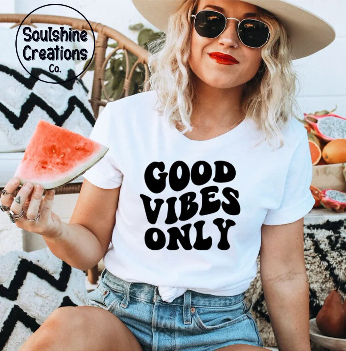 Good Vibes Only shirt- (Color of shirt in photo is White, for reference)
