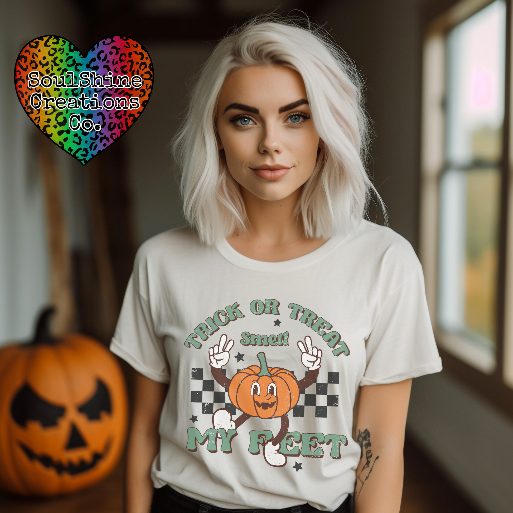 This Halloween, stay spooky and stylish in our Trick or Treat Smell My Feet Retro Tee or Sweater! Featuring a classic Halloween phrase, it's the perfect way to show off your seasonal spirit - without taking yourself too seriously. Get your fright on!