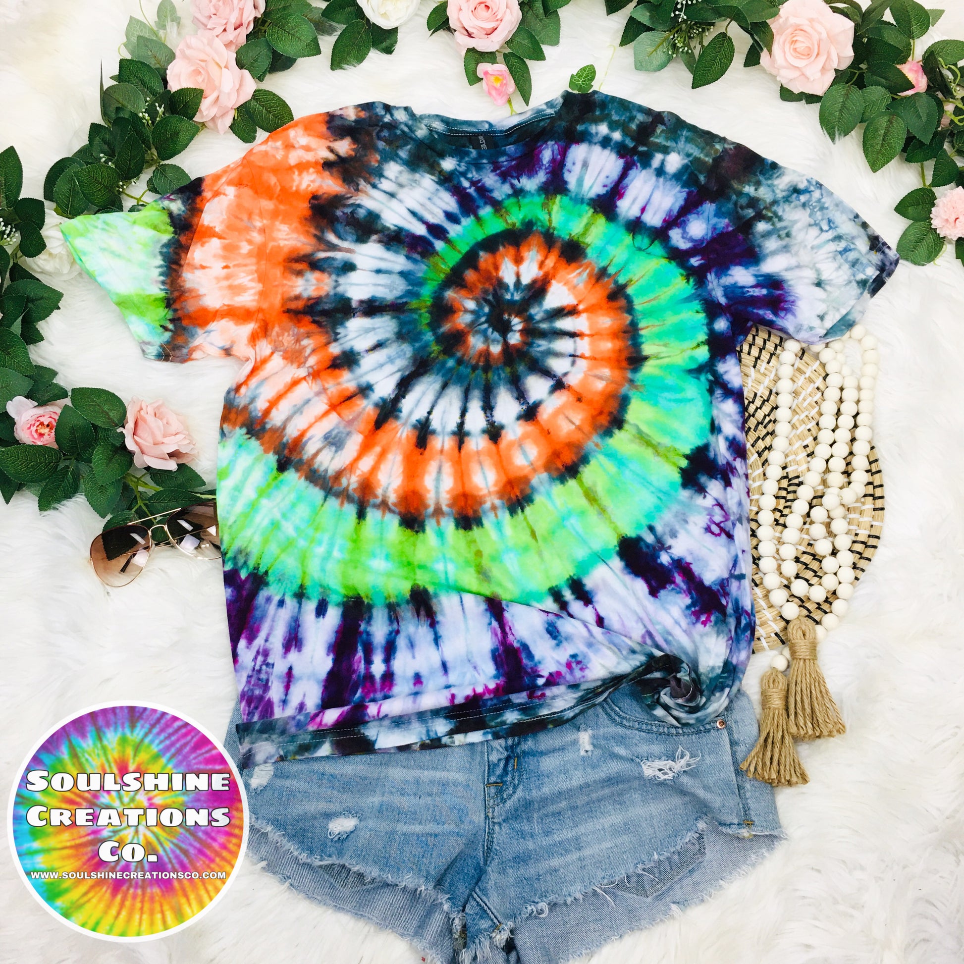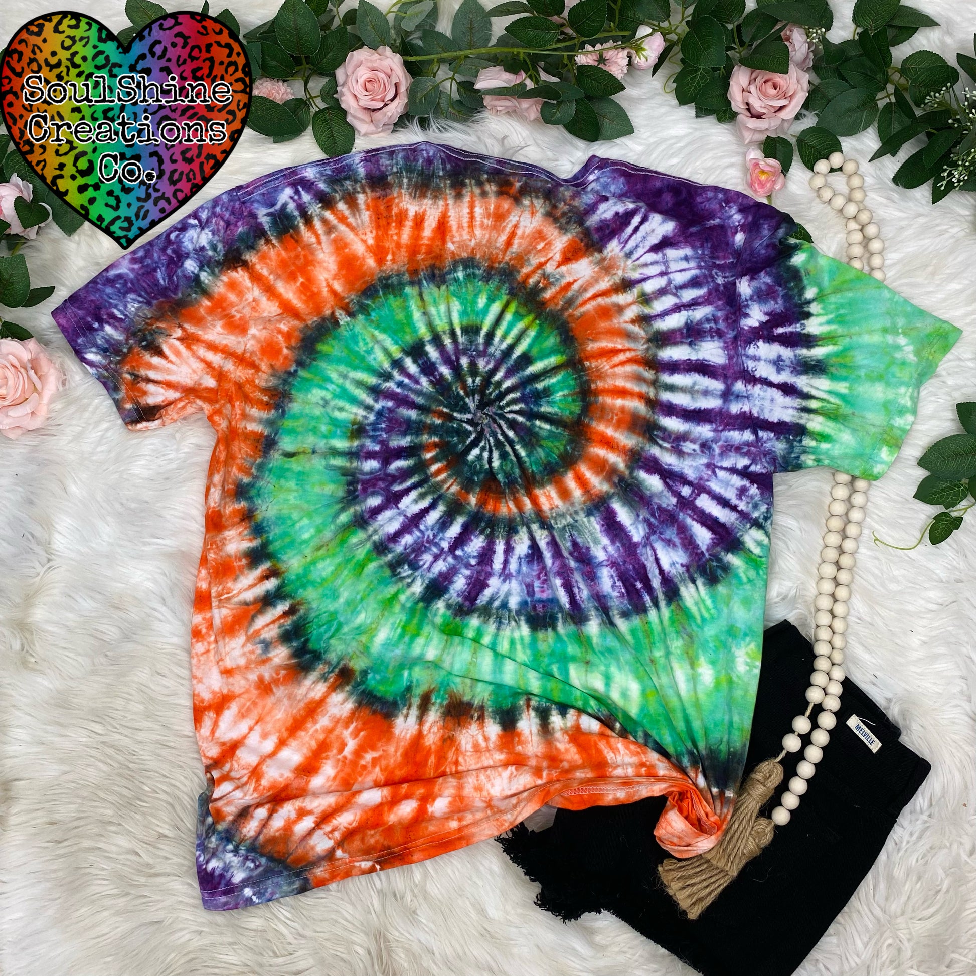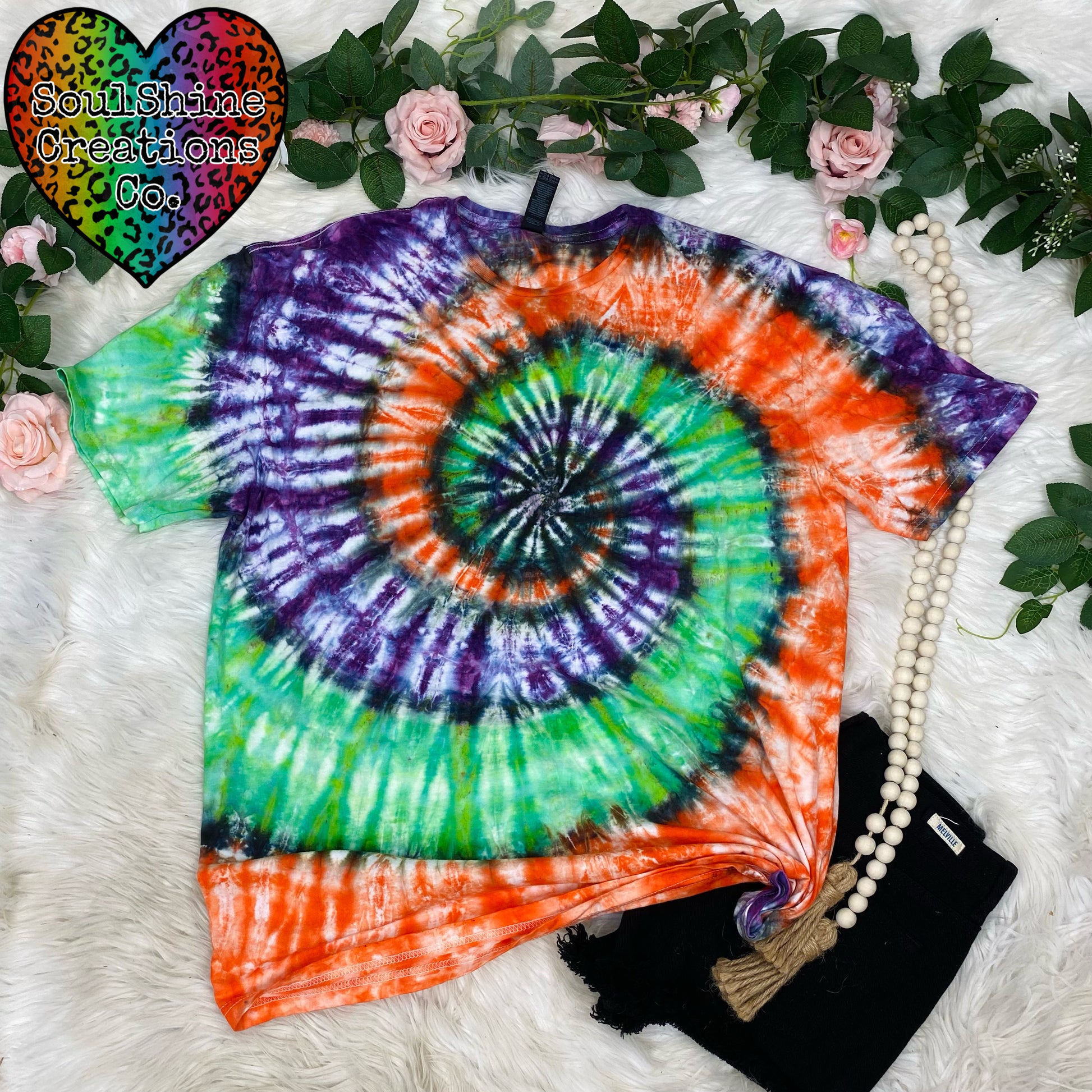 PLEASE NOTICE THAT TIE DYEING IS AN UNPREDICTABLE PROCESS. NO TWO PIECES WILL BE EXACTLY THE SAME. PLEASE EMBRACE THE UNIQUENESS OF EACH HAND DYED PIECE.