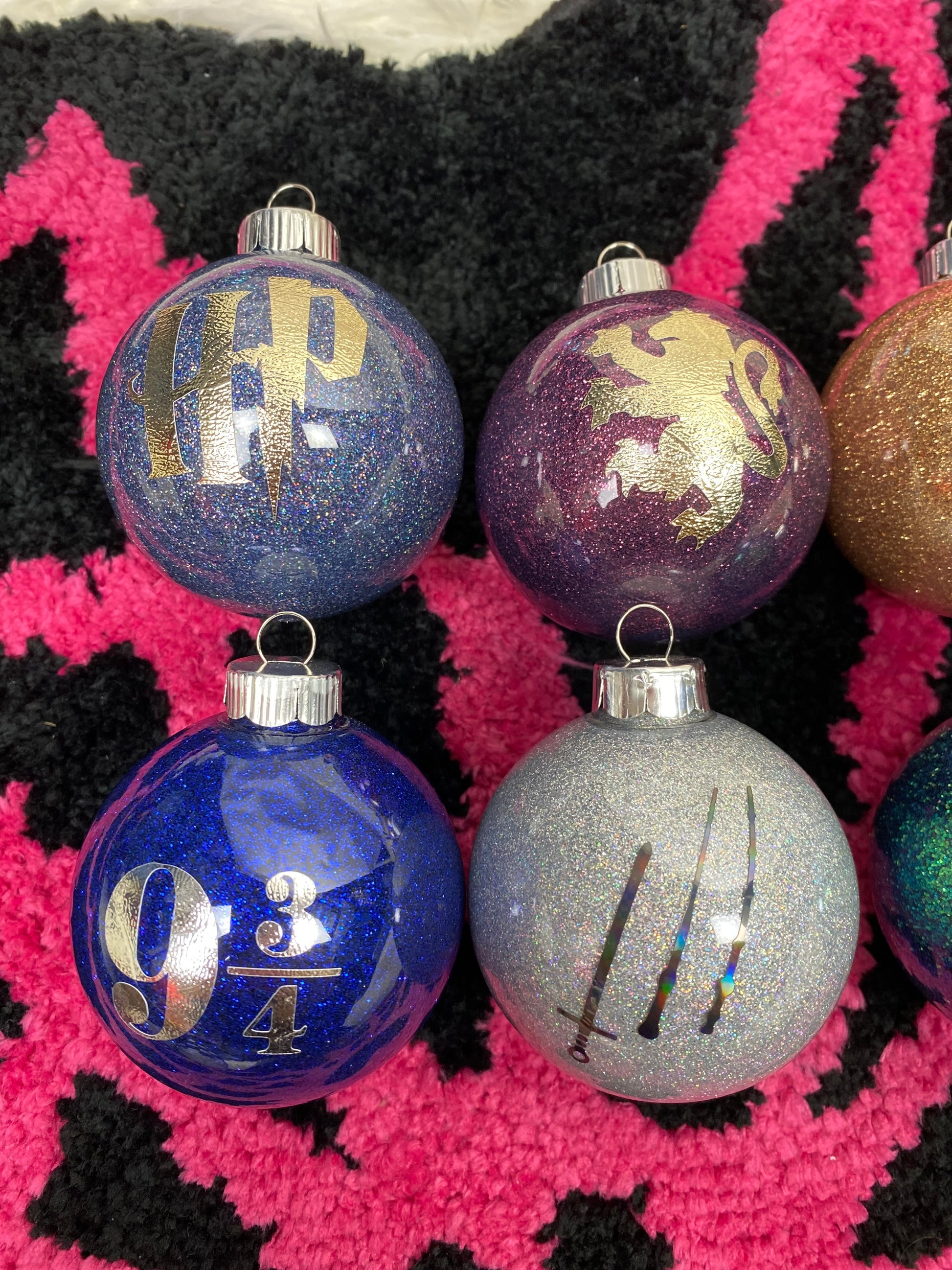 Ball ornaments measure approximately 2.6” and are made of plastic.