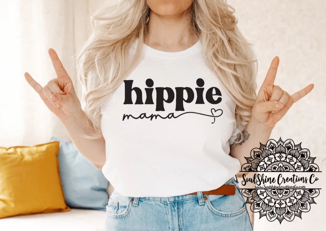 Hippie Mama shirt- (Color of shirt in photo is White, for reference)