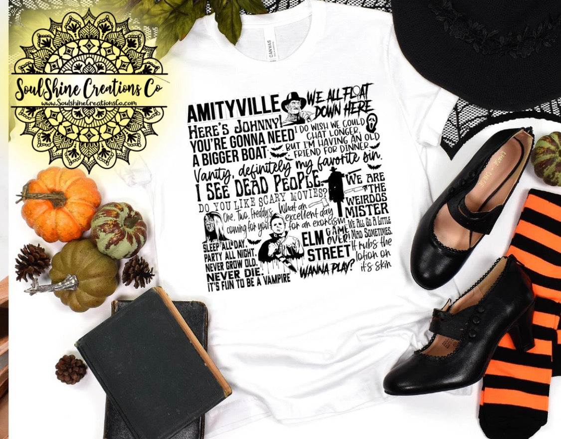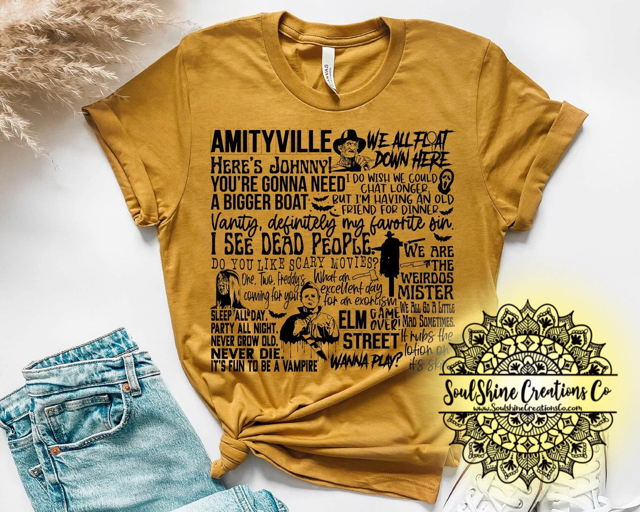 Horror Movies Shirt- (Color of shirt in photo is Mustard & White, for reference)