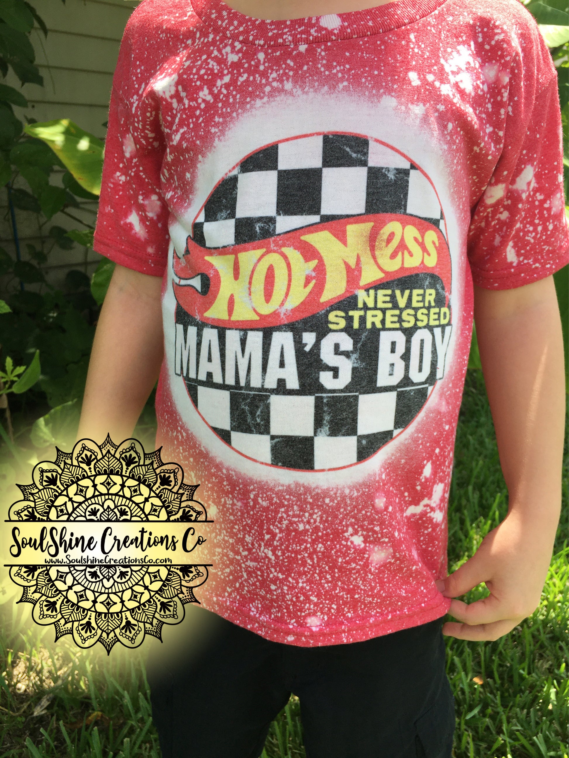 Hot Mess Mama’s Boy Bleached Kids Shirt