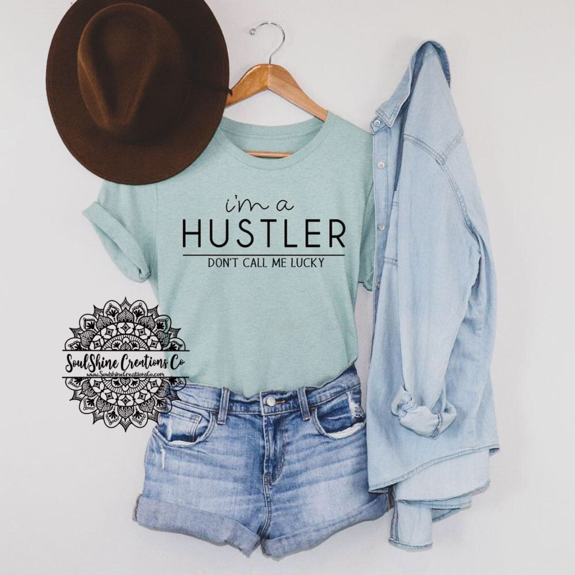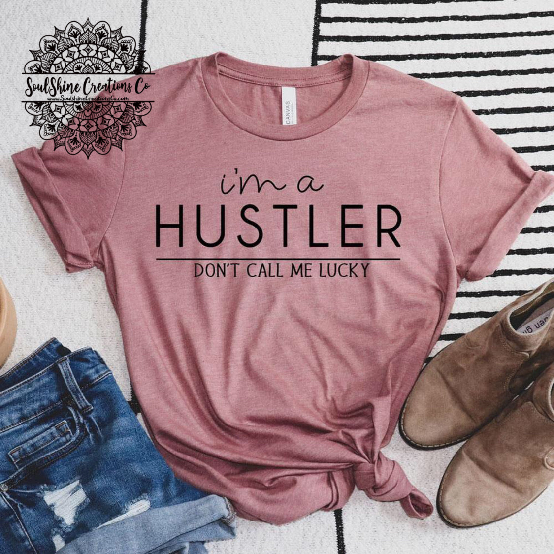 I’m a hustler don’t call me lucky - (Color of shirt in photo is Heather Orchid & Heather Ice Blue, for reference)
