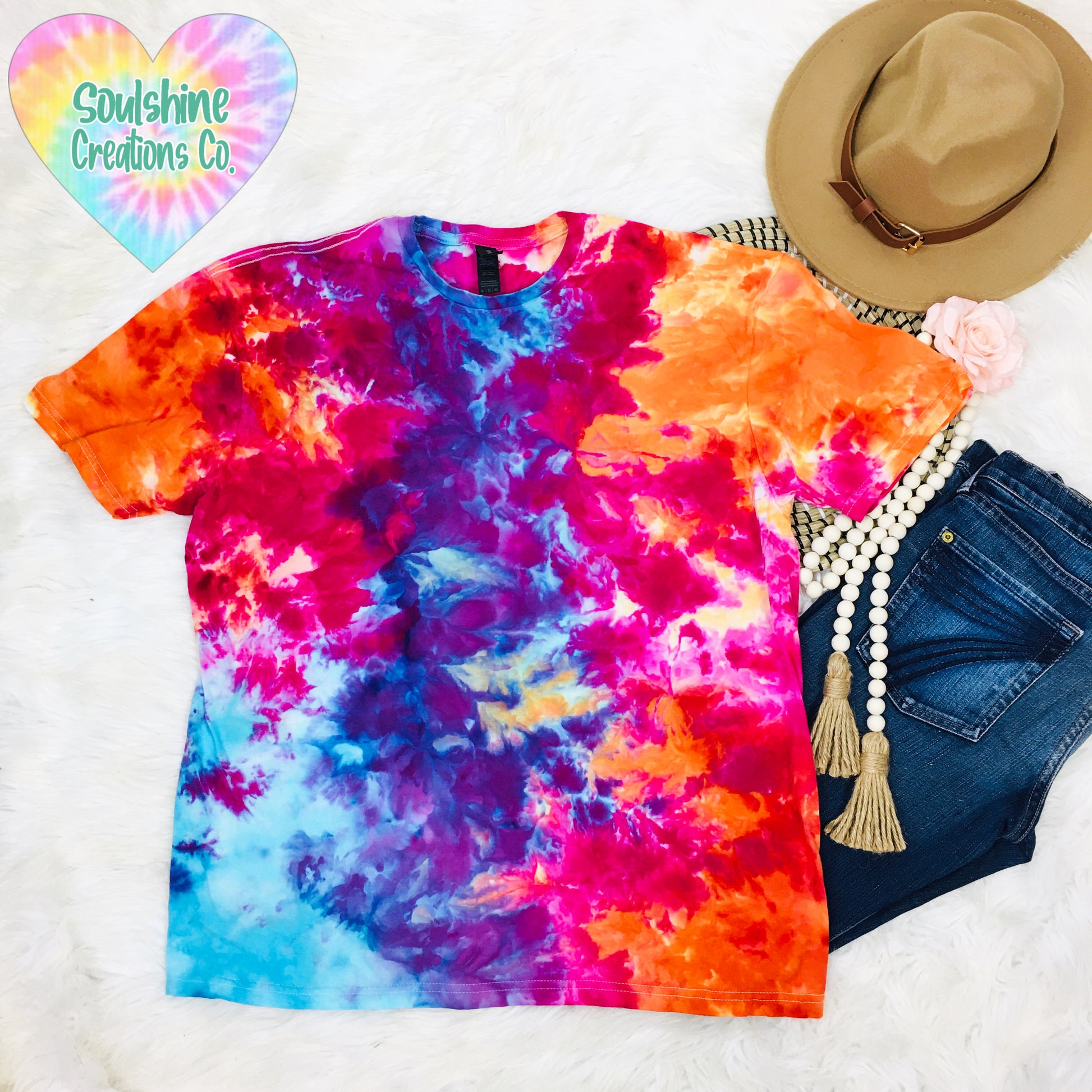PLEASE NOTICE THAT TIE DYEING IS AN UNPREDICTABLE PROCESS. NO TWO PIECES WILL BE EXACTLY THE SAME. PLEASE EMBRACE THE UNIQUENESS OF EACH HAND DYED PIECE.