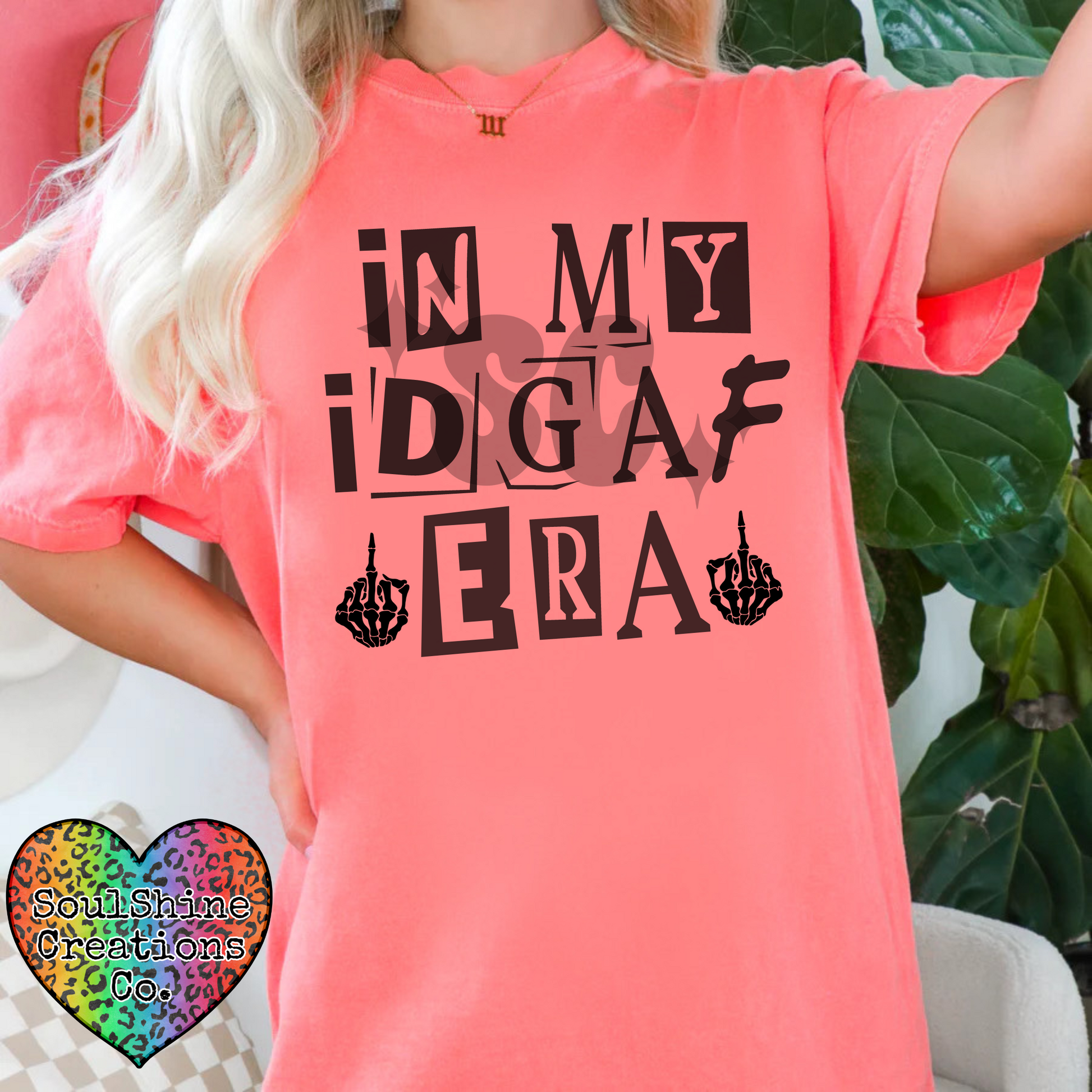 In my IDGAF Era Shirt - (Color of shirt in photo is Bright Salmon, for reference)