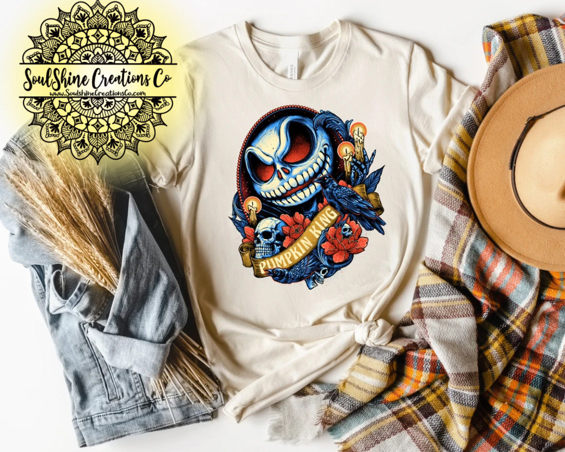 Jack Skellington Pumpkin King Shirt- (Color of shirt in photo is Natural, for reference)