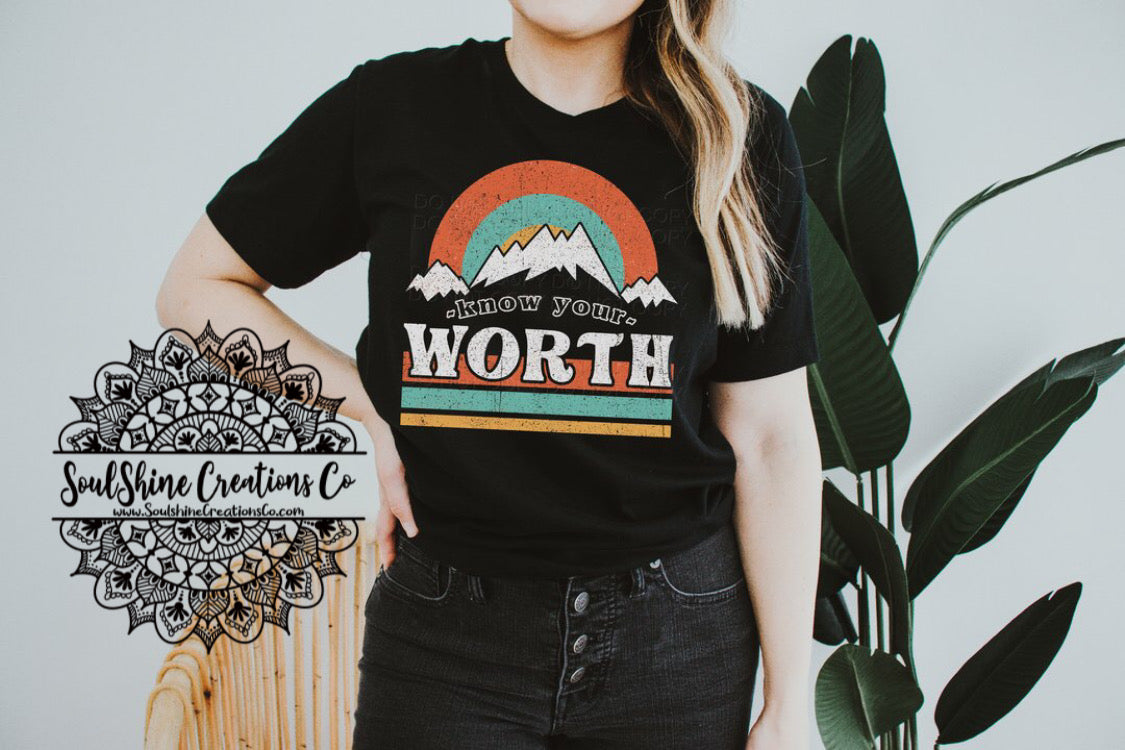 Know your Worth- (Color of shirt in photo is Black, for reference)