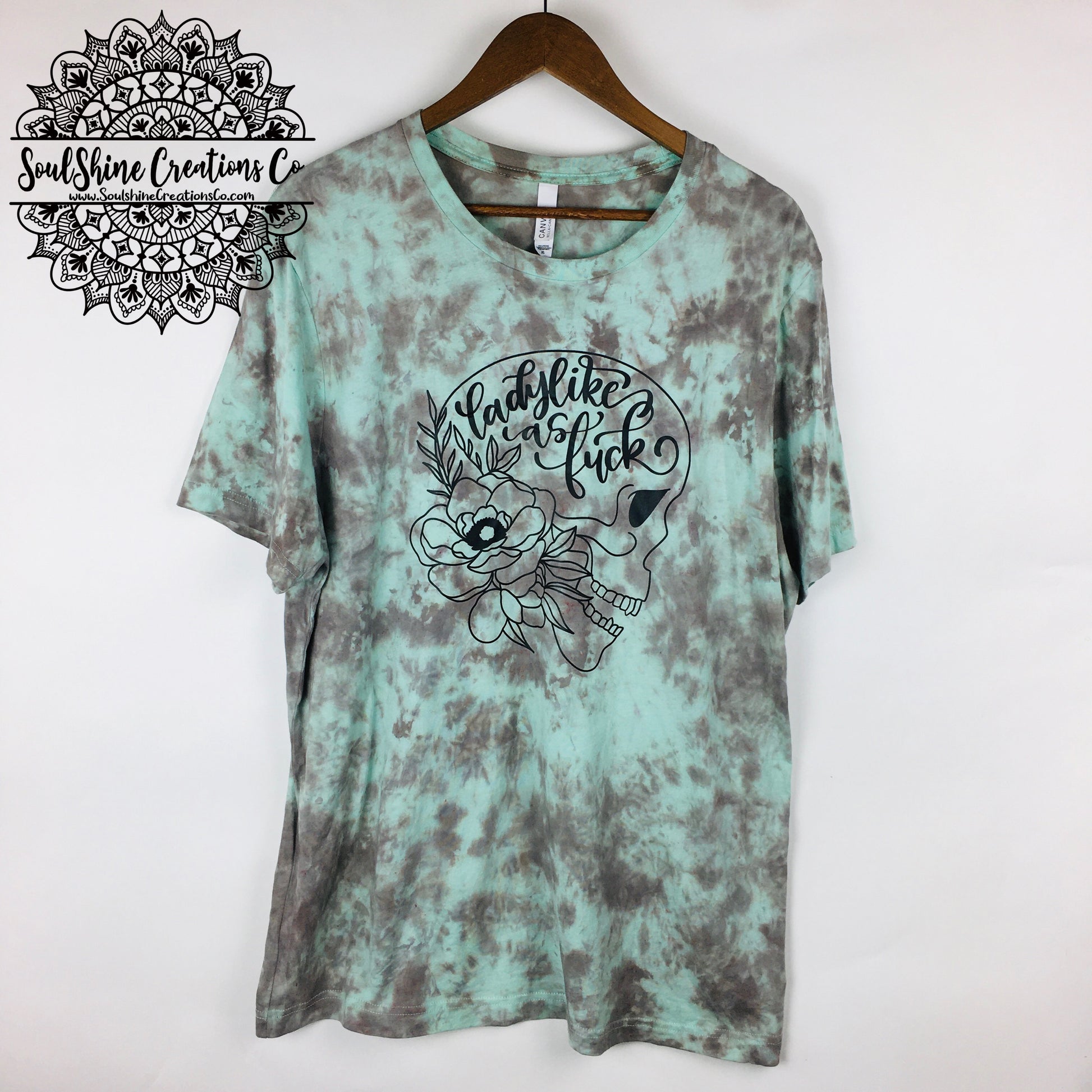 This listing is for a one of a kind hand tie dyed screen printed tee. No two tees will be exactly alike so please be aware and embrace the differences.