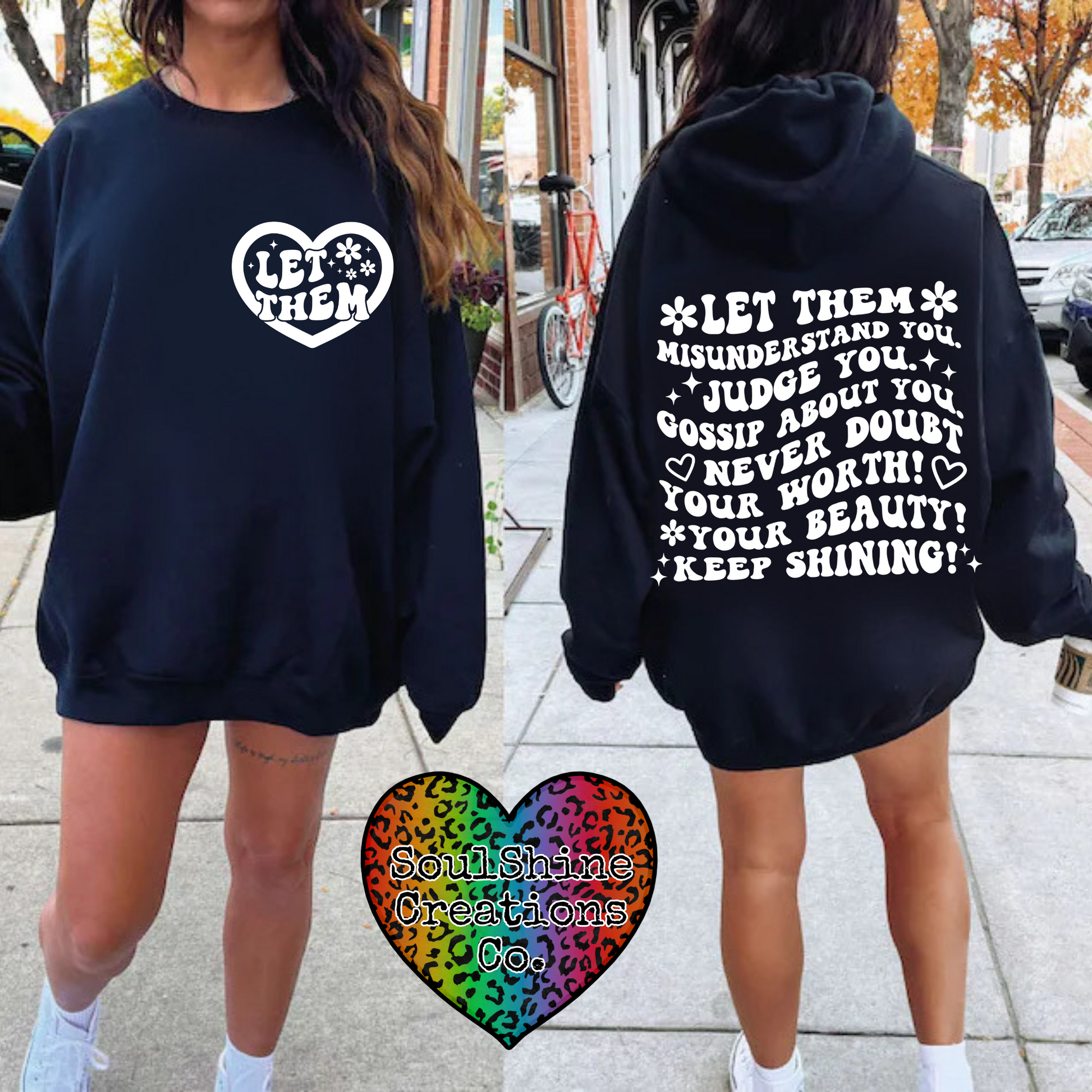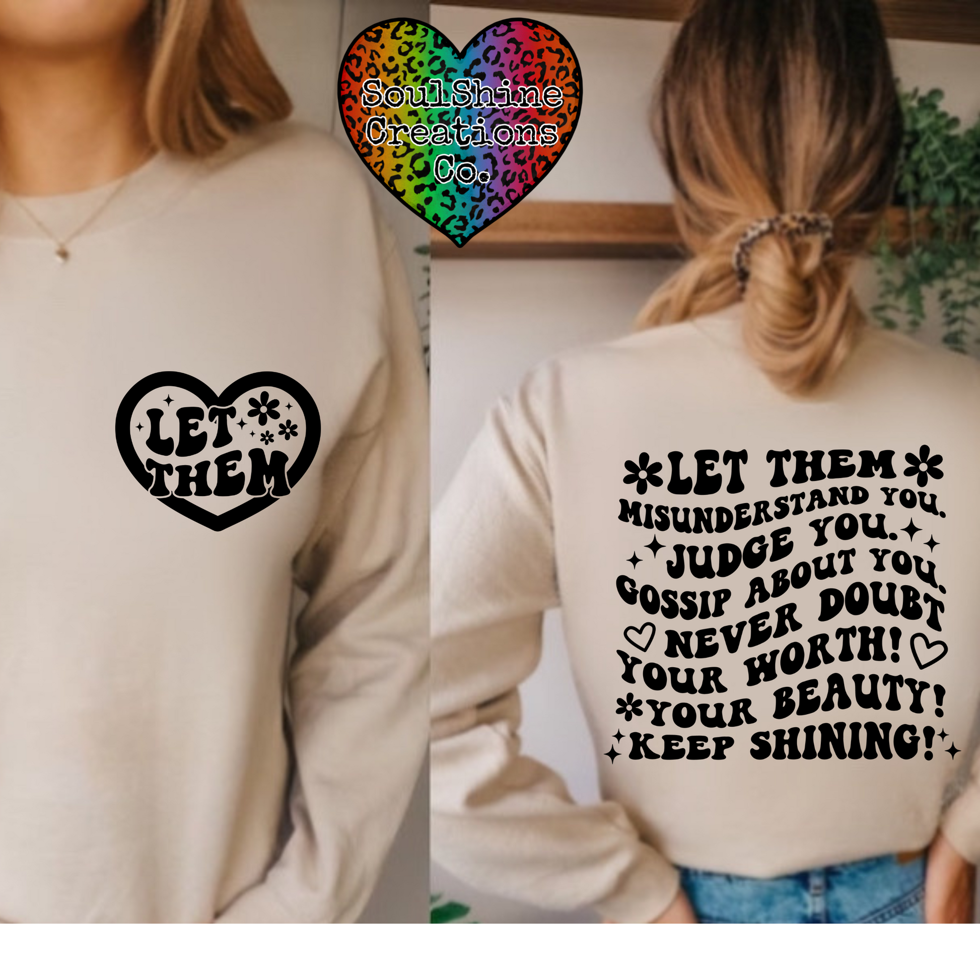Let your personality shine and don't let other people's misunderstandings bring you down. This Let Them tee or sweater is perfect for anyone looking for a stylish way to embrace their true self.