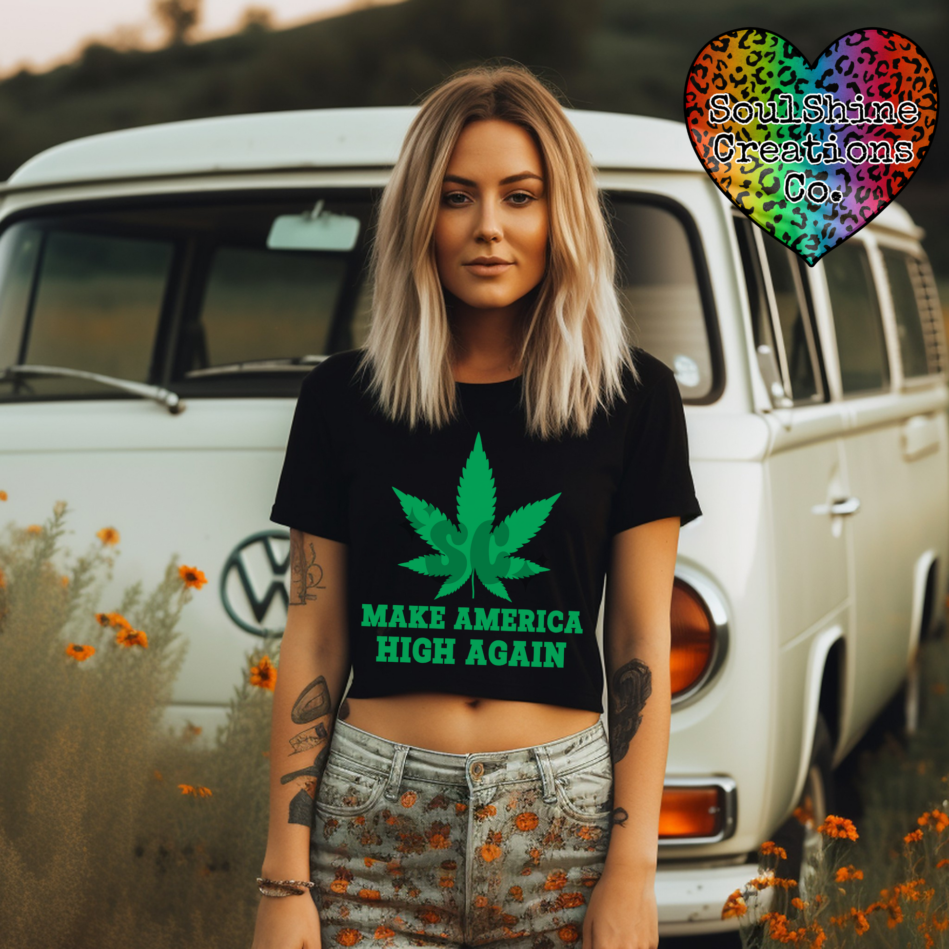 Make a bold statement in this "Make America High Again" shirt! Show your support for cannabis in style, with a classic tee that starts conversations and serves as a reminder of the fight for legalization. You can make a difference!