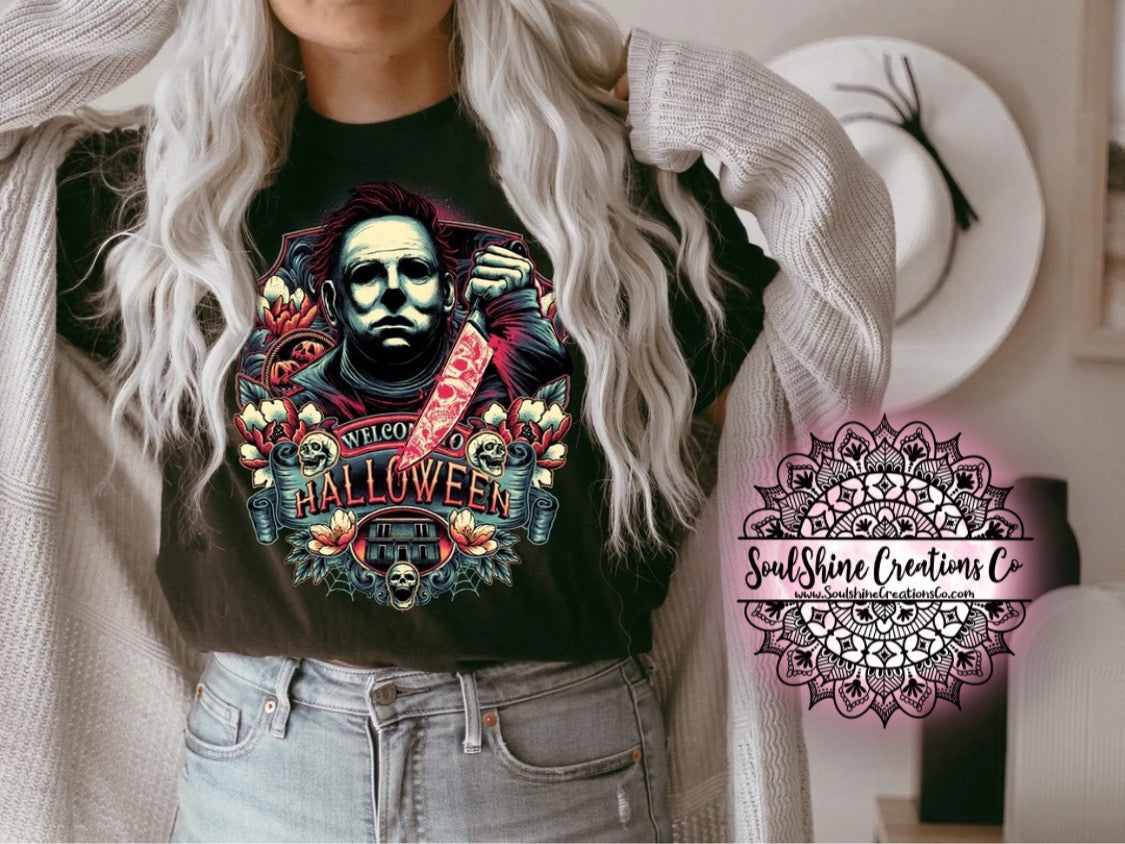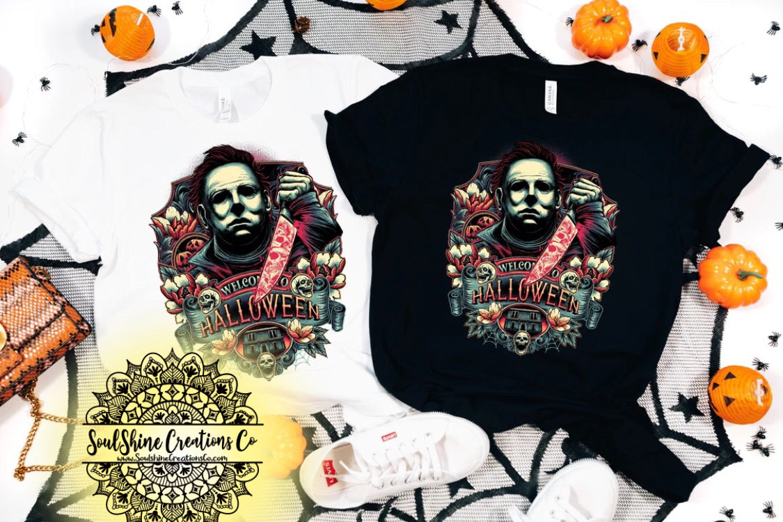 Michael Myers Halloween Shirt- (Color of shirt in photo is White & Black, for reference)
