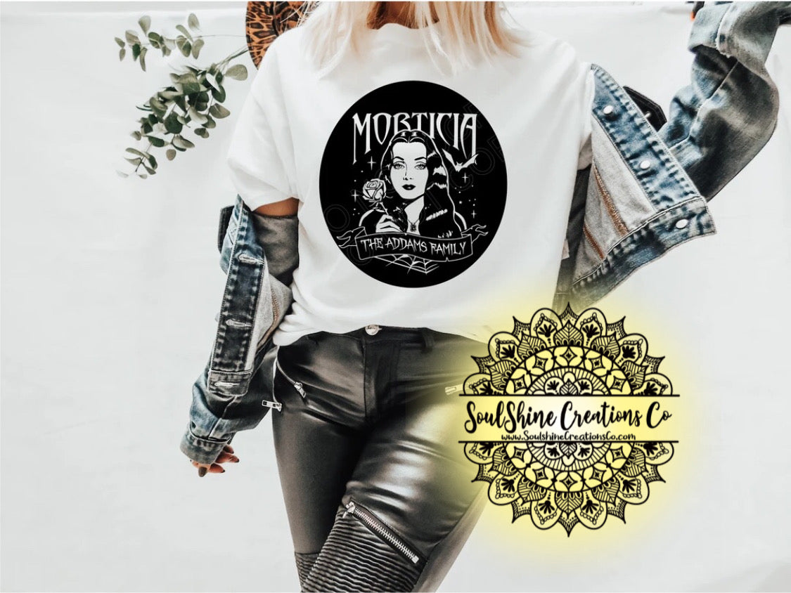 Morticia Addams Shirt- (Color of shirt in photo is White, for reference)