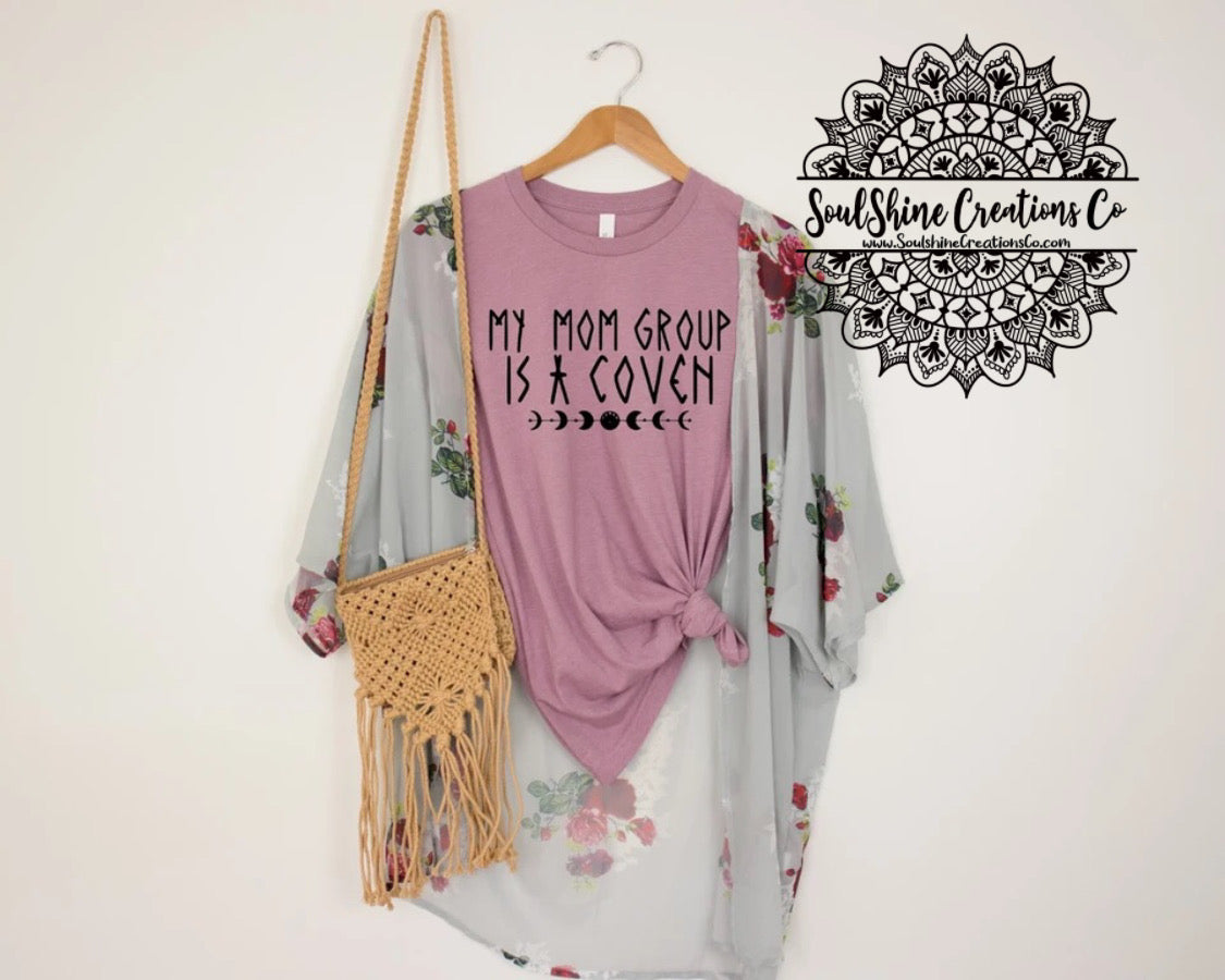 My mom group is a coven- (Color of shirt in photo is Orchid, for reference)