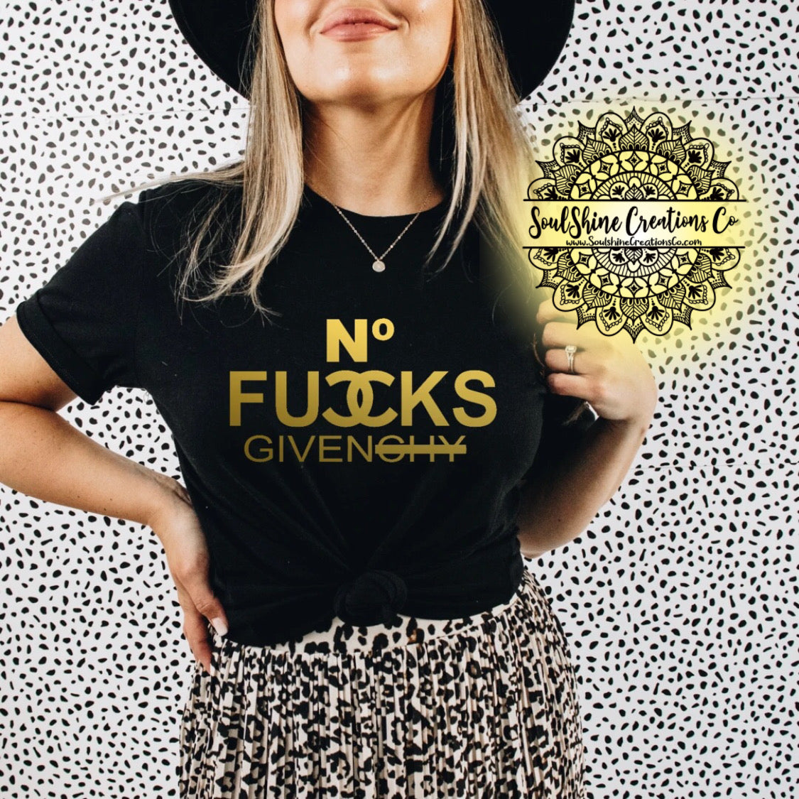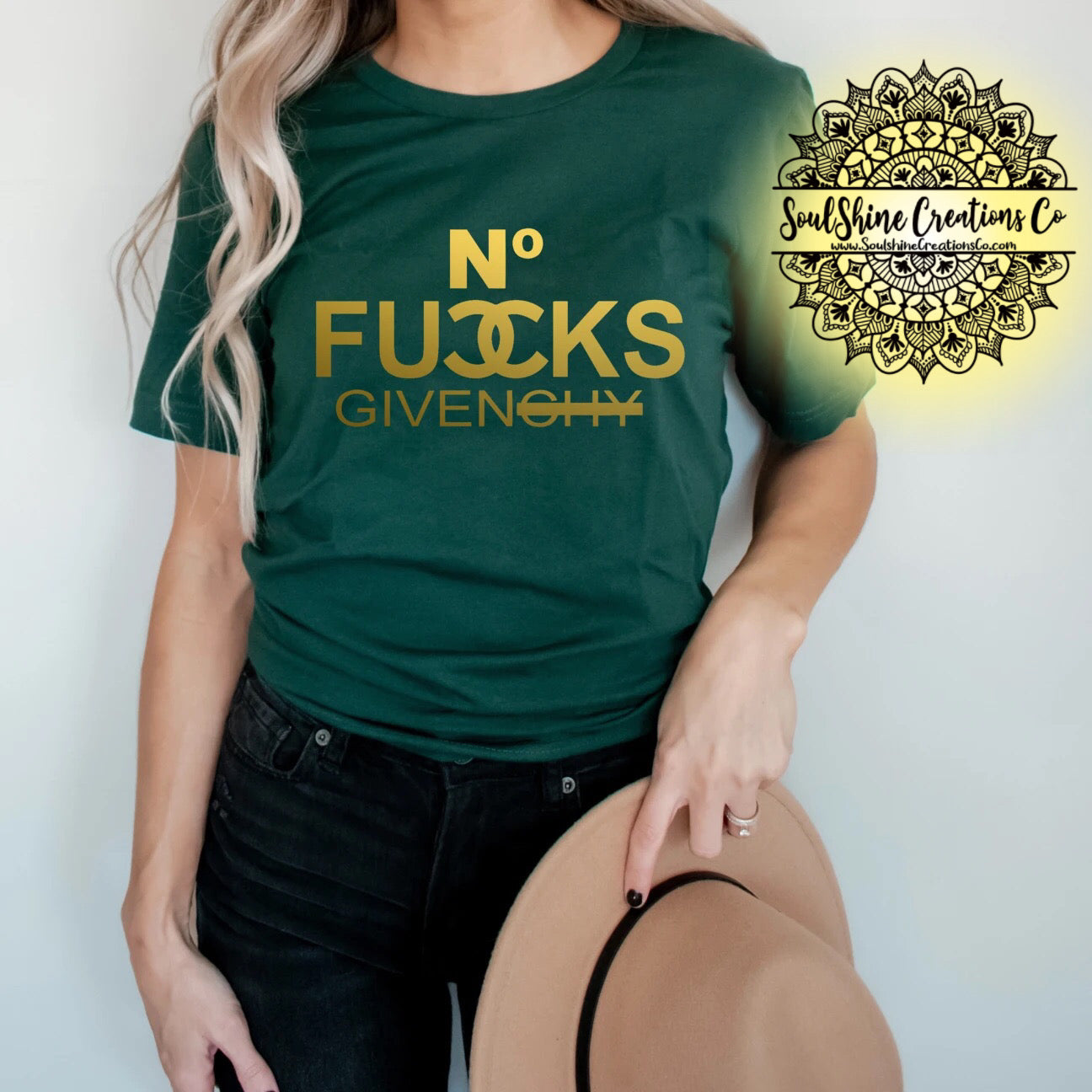 No Fucks Given Shirt- (Color of shirt in photo is Black & Deep Teal, for reference)
