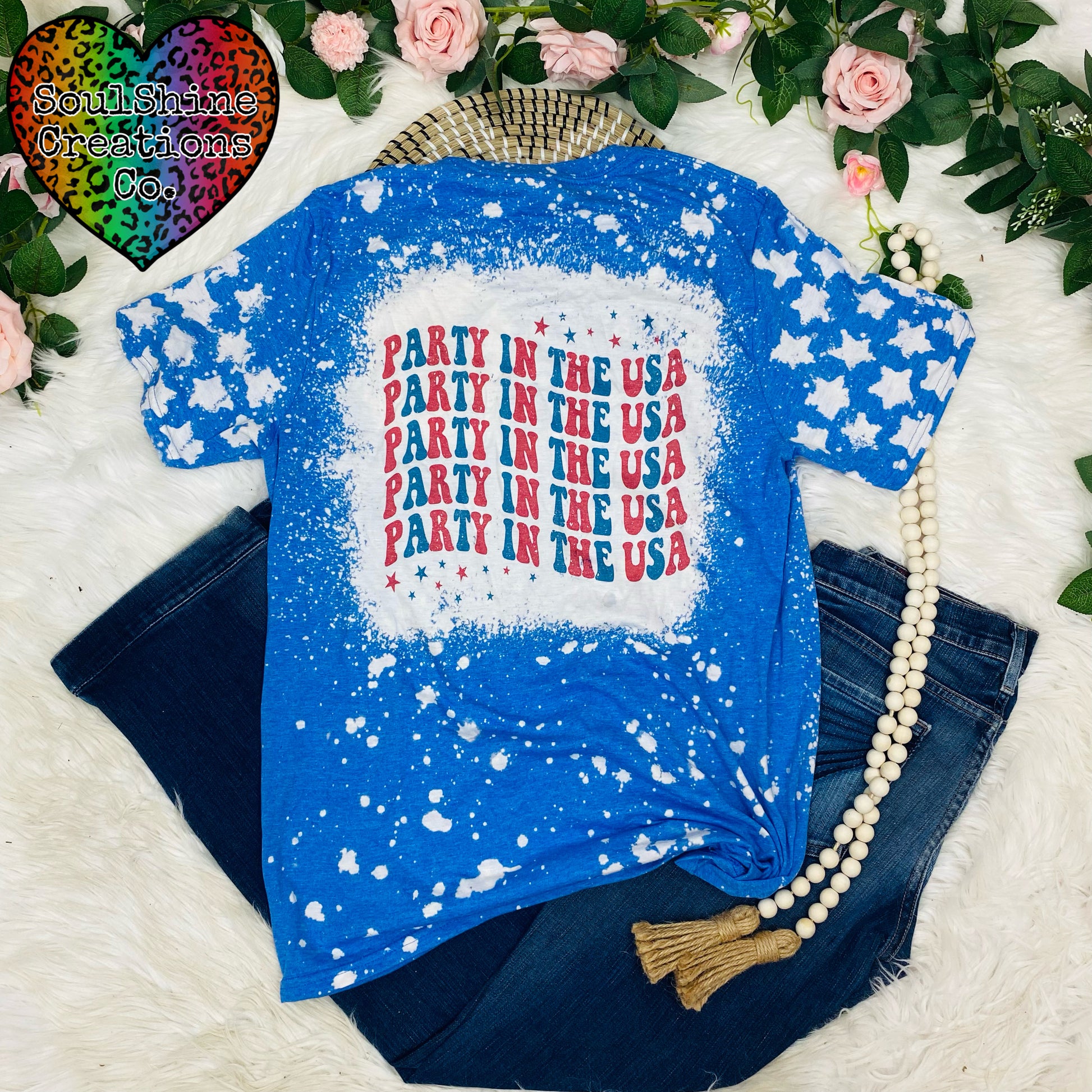 keywords: 4th of July, Patriotic, Red White & Blue, Love, Retro,Y2K, Bleached Tees, Graphic Tee