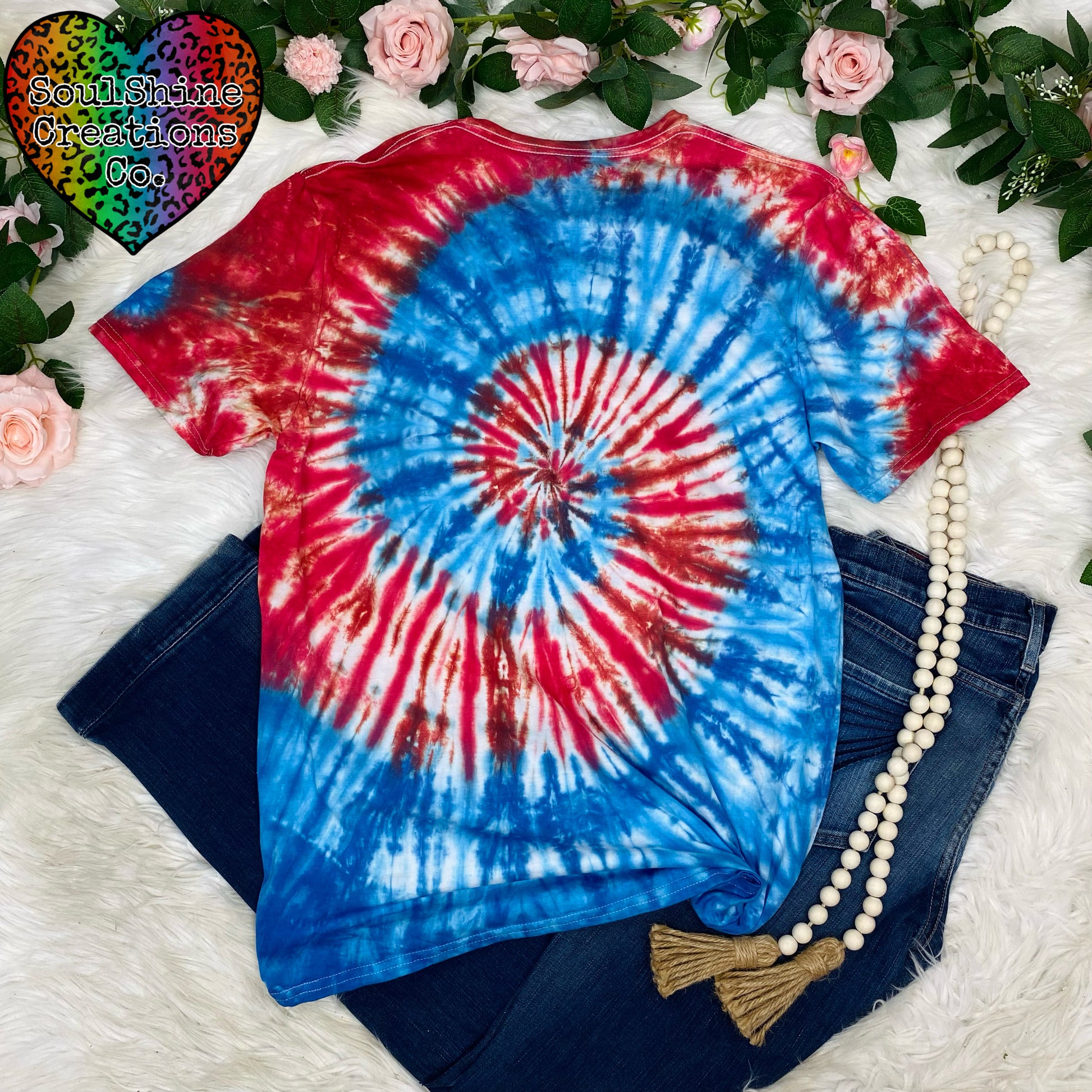 Patriotic Red White Blue Spiral Tie Dye Shirt