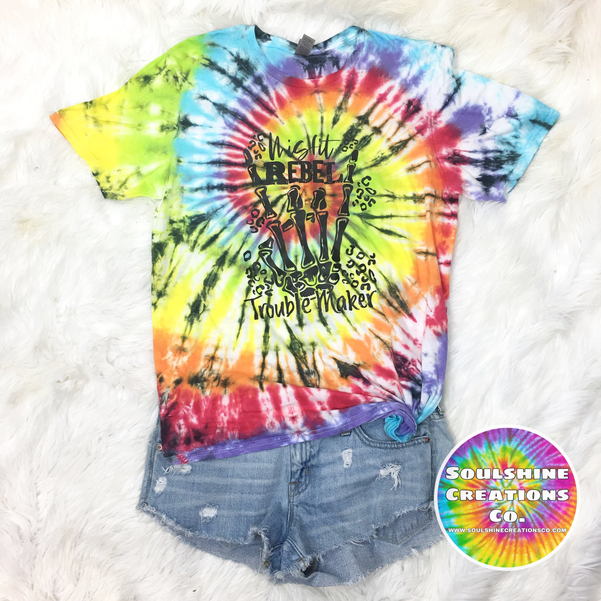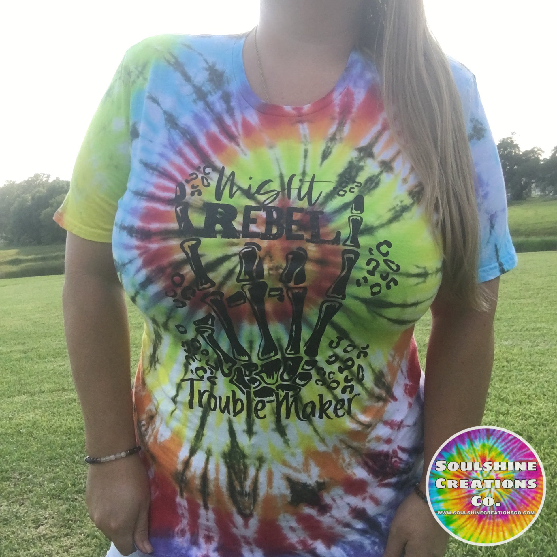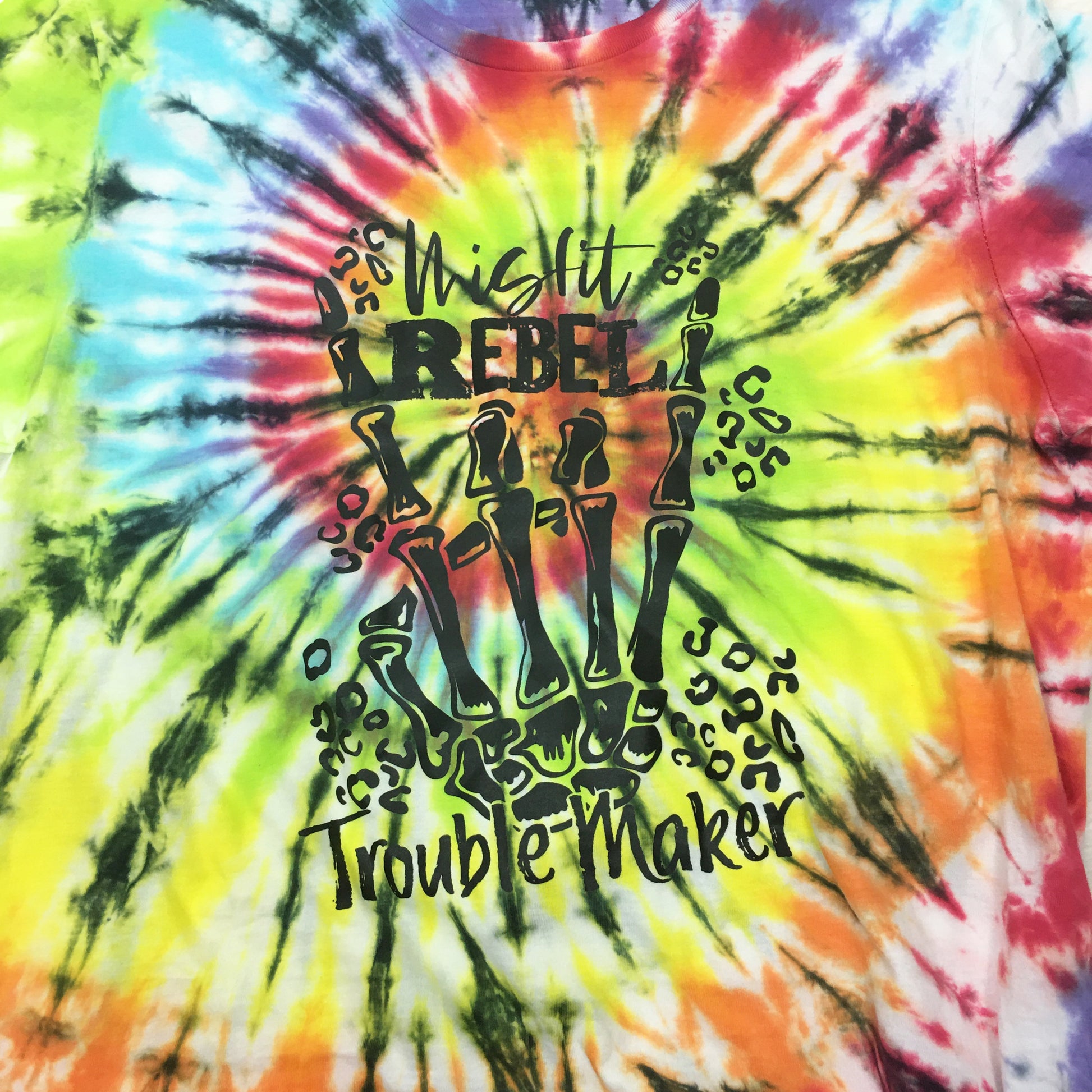 Misfit Rebel Troublemaker Rainbow Bright Spiral Tie Dye Shirt