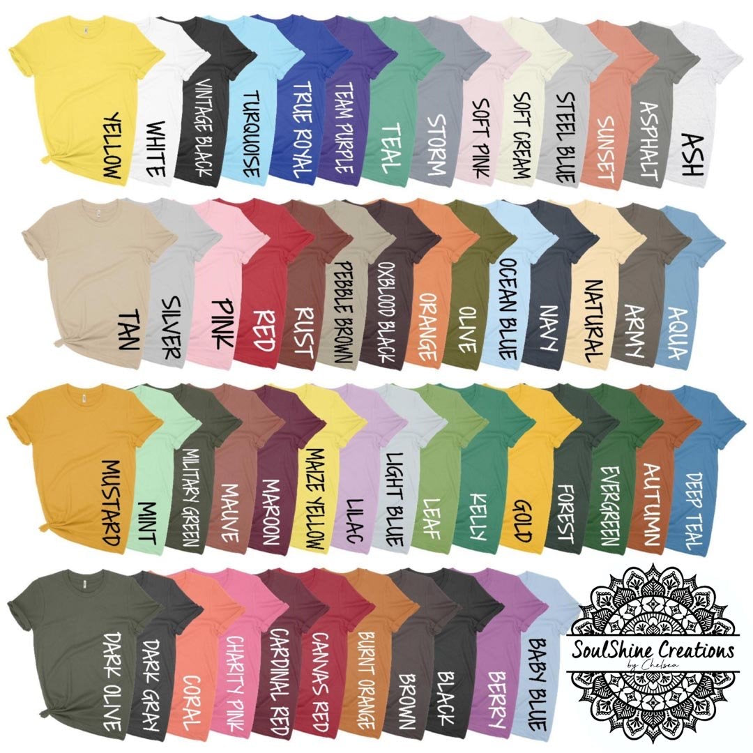 Note: Please leave your color selection in a Note or Message at Checkout. If for any reason your color choice is unavailable or out of stock, I will message you so you can choose another color. My current turn around time for shirts is 1-2 Weeks. If for any reason it takes longer to to inventory issues I will reach out to you right away.