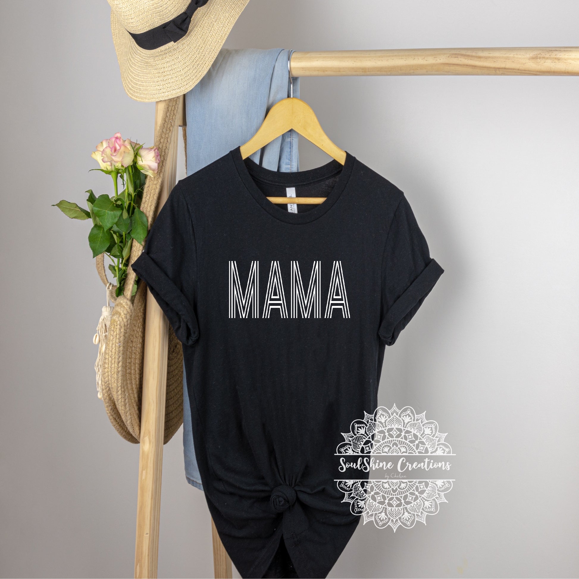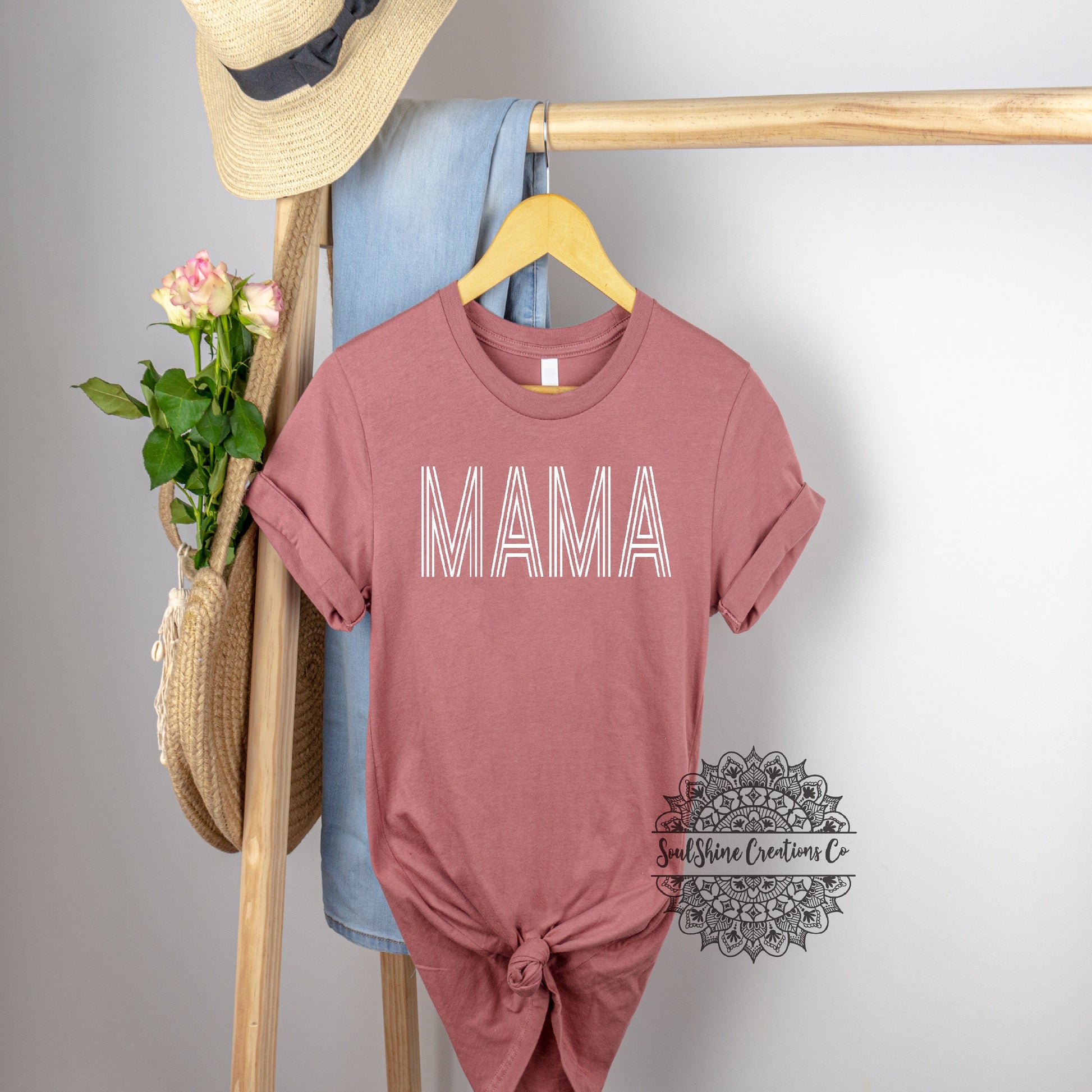 Retro Mama- (Color of shirt in photo is Heather Mauve & Black, for reference)