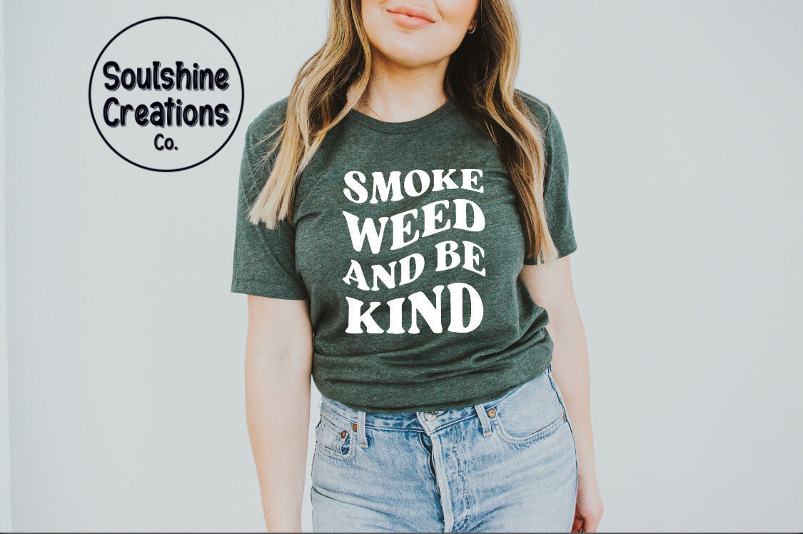 Smoke Weed Be Kind Shirt- (Color of shirt in photo is Heather Forest Green, for reference)