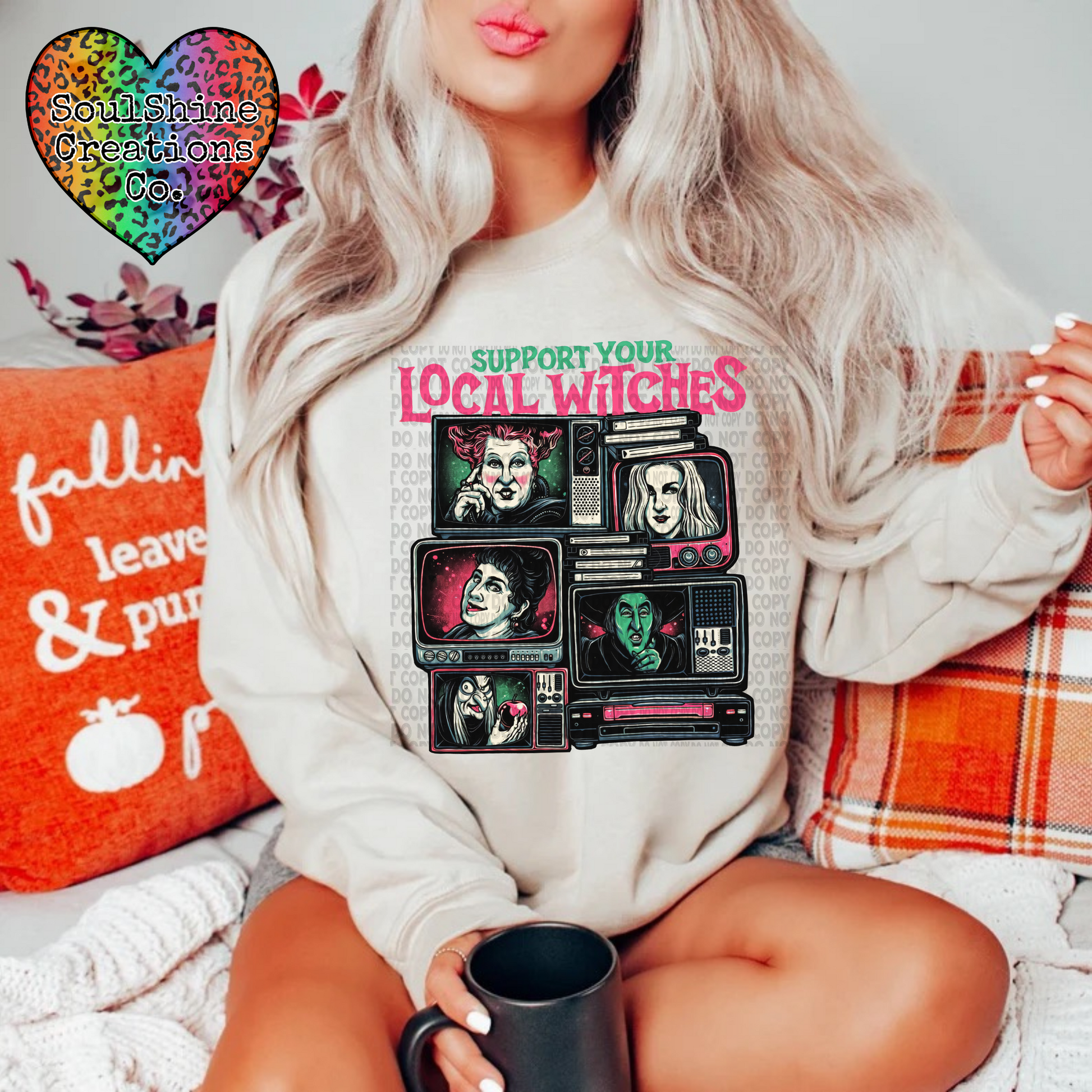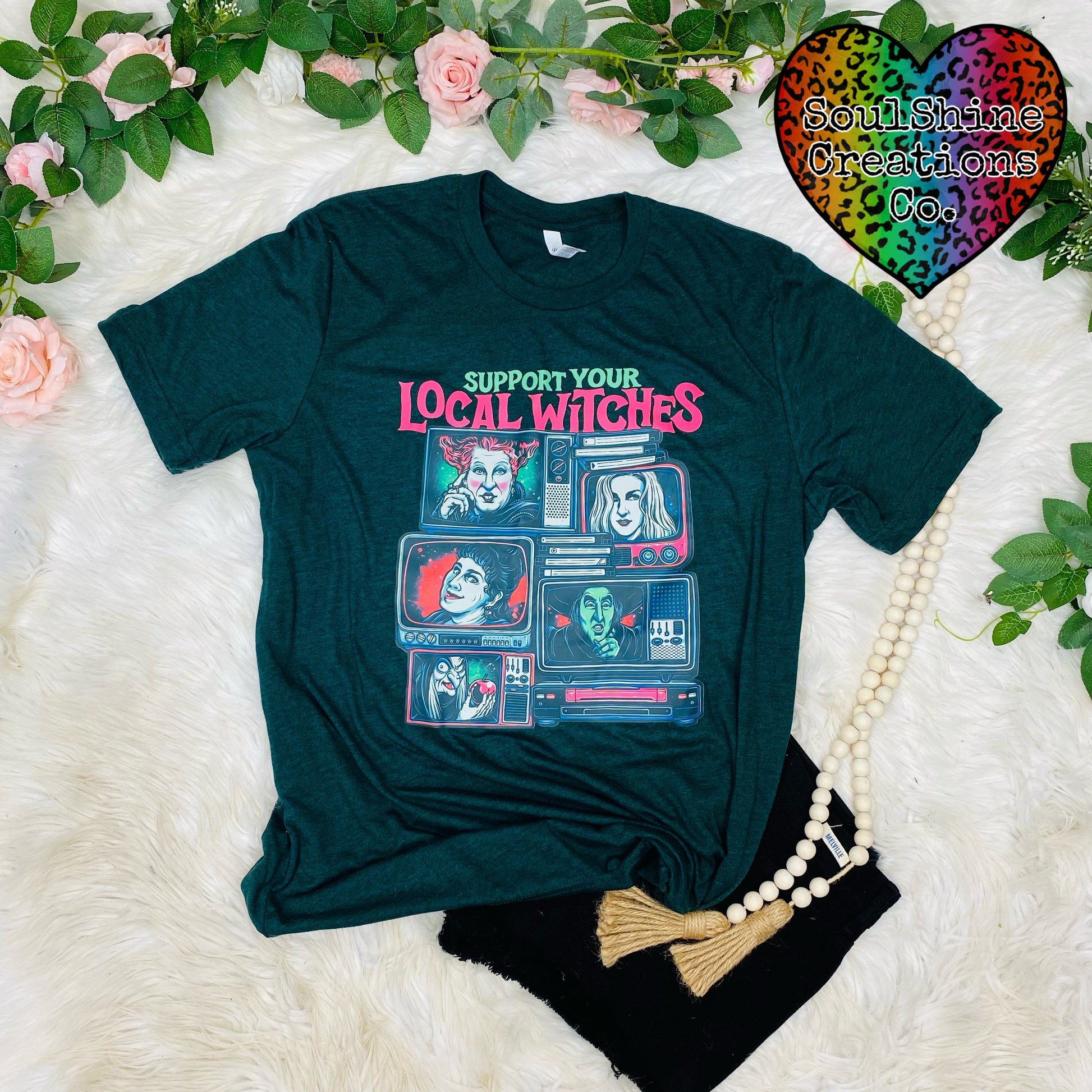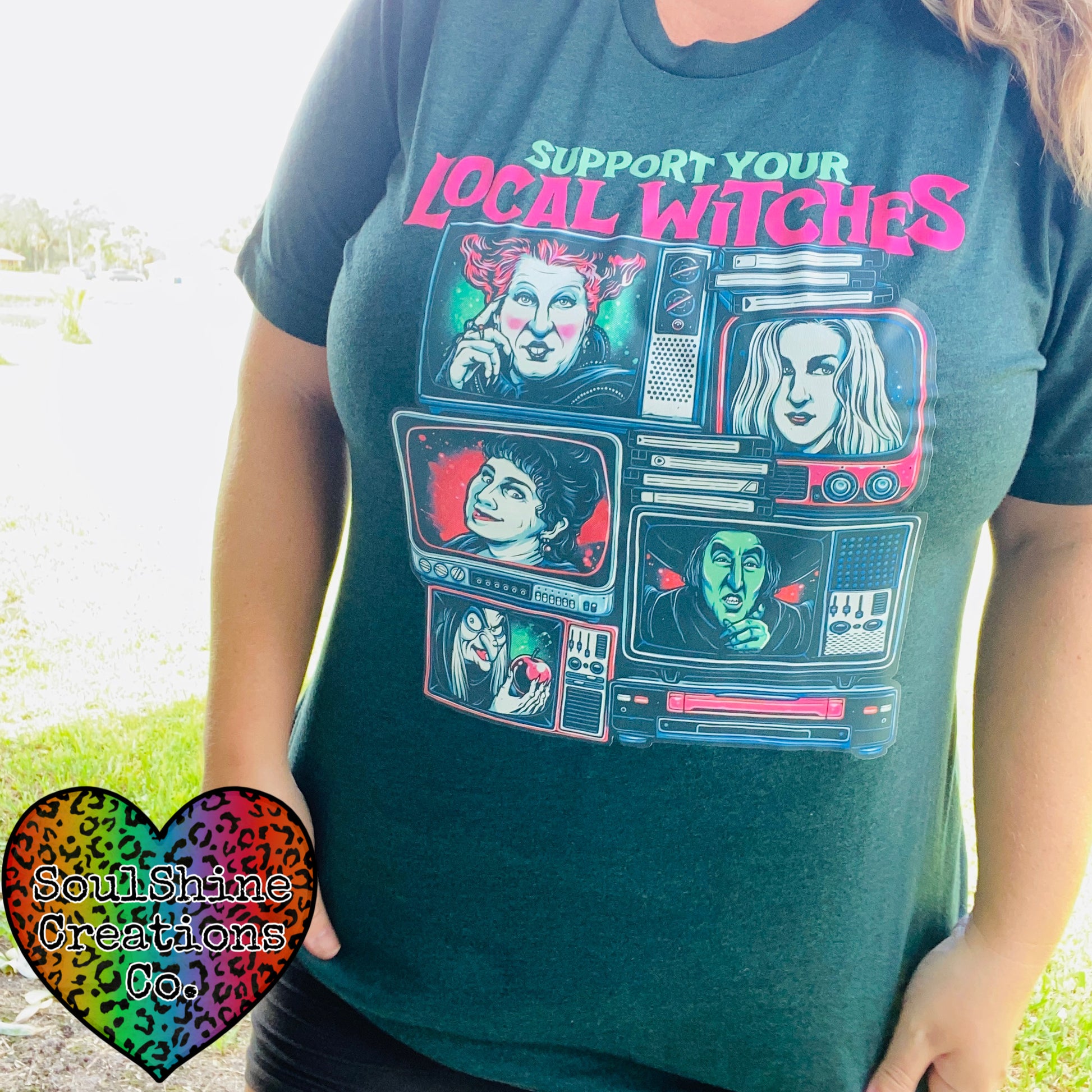 This support your local witches Tee or Sweater is perfect for any retro-loving Halloween enthusiast! Show off your spooky style in this unique design - sure to make you the life of the party!