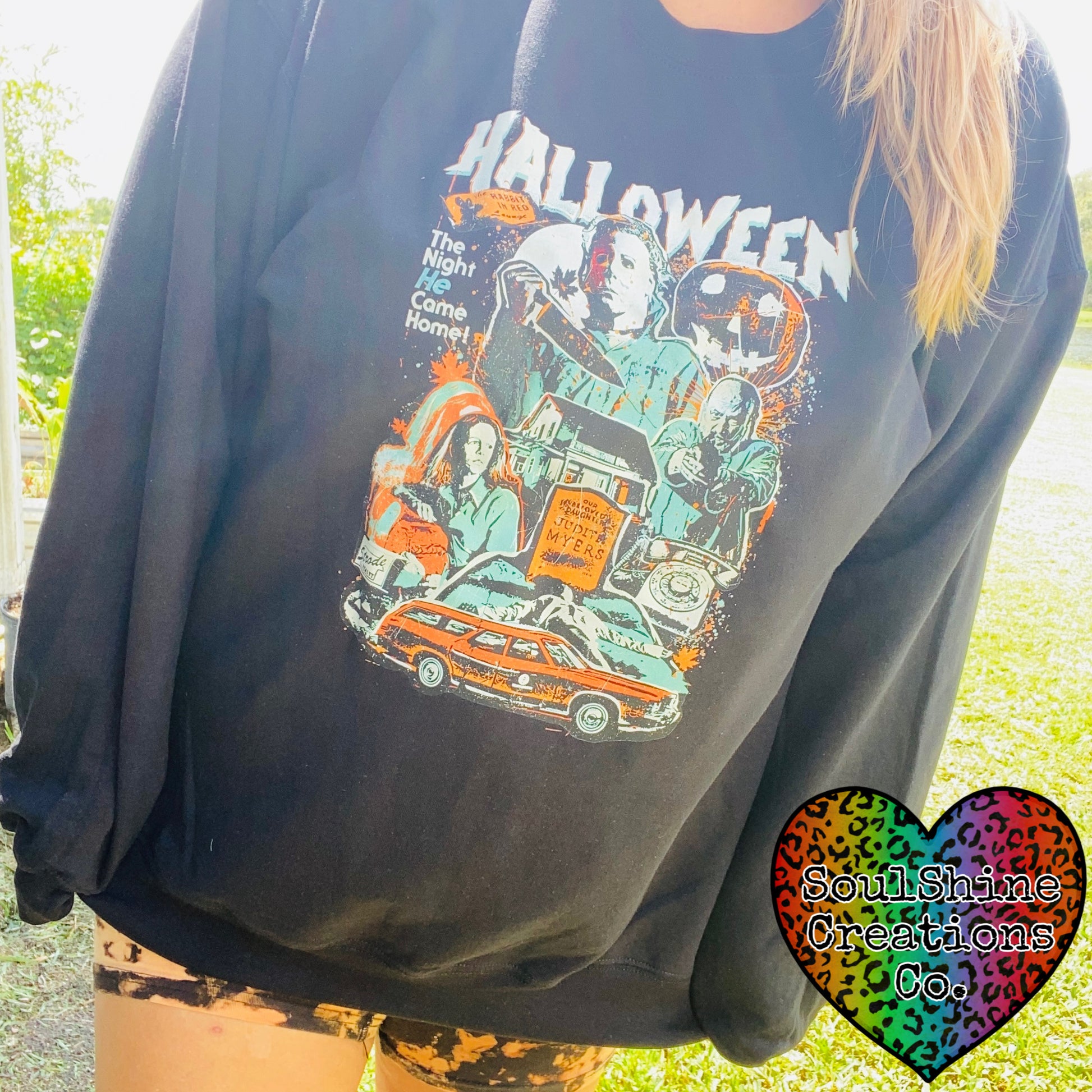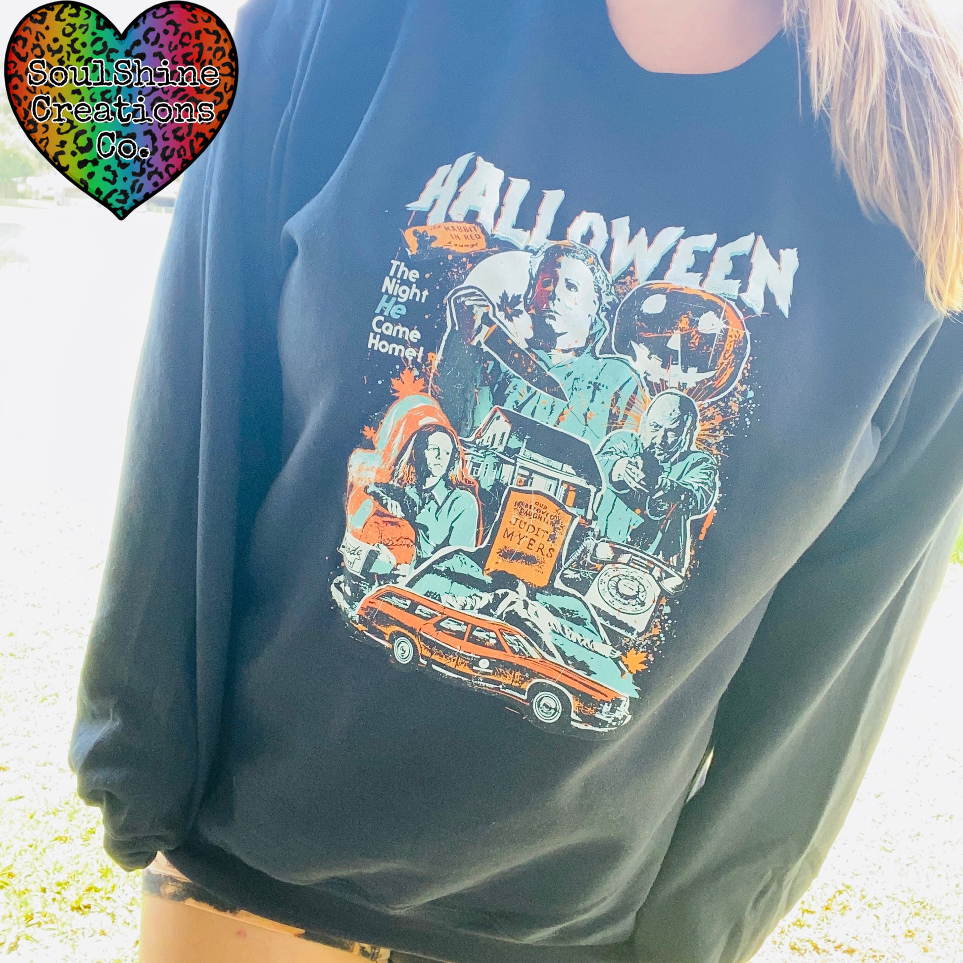 This Tee or Sweater is perfect for any retro-loving Halloween enthusiast! Show off your spooky style in this unique design - sure to make you the life of the party!