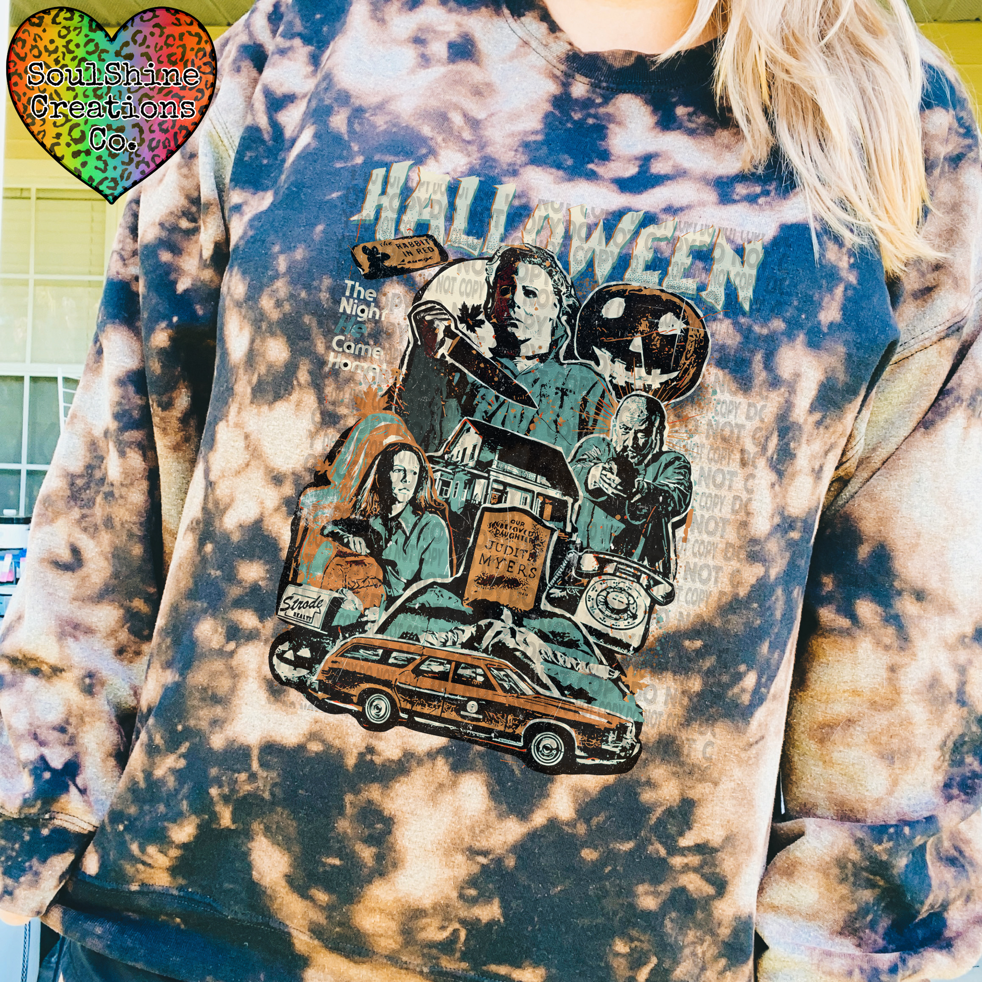 This Halloween bleached Tee or Sweater is perfect for any retro-loving Halloween enthusiast! Show off your spooky style in this unique design - sure to make you the life of the party!
