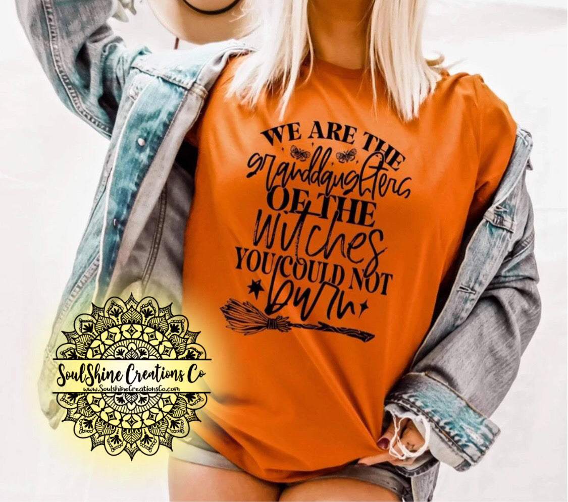 We are the Granddaughters of the Witches you could not burn Shirt- (Color of shirt in photo is Orange, for reference)