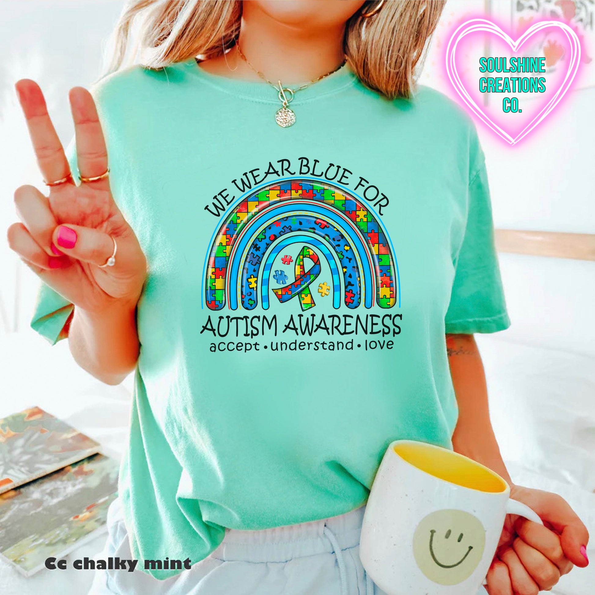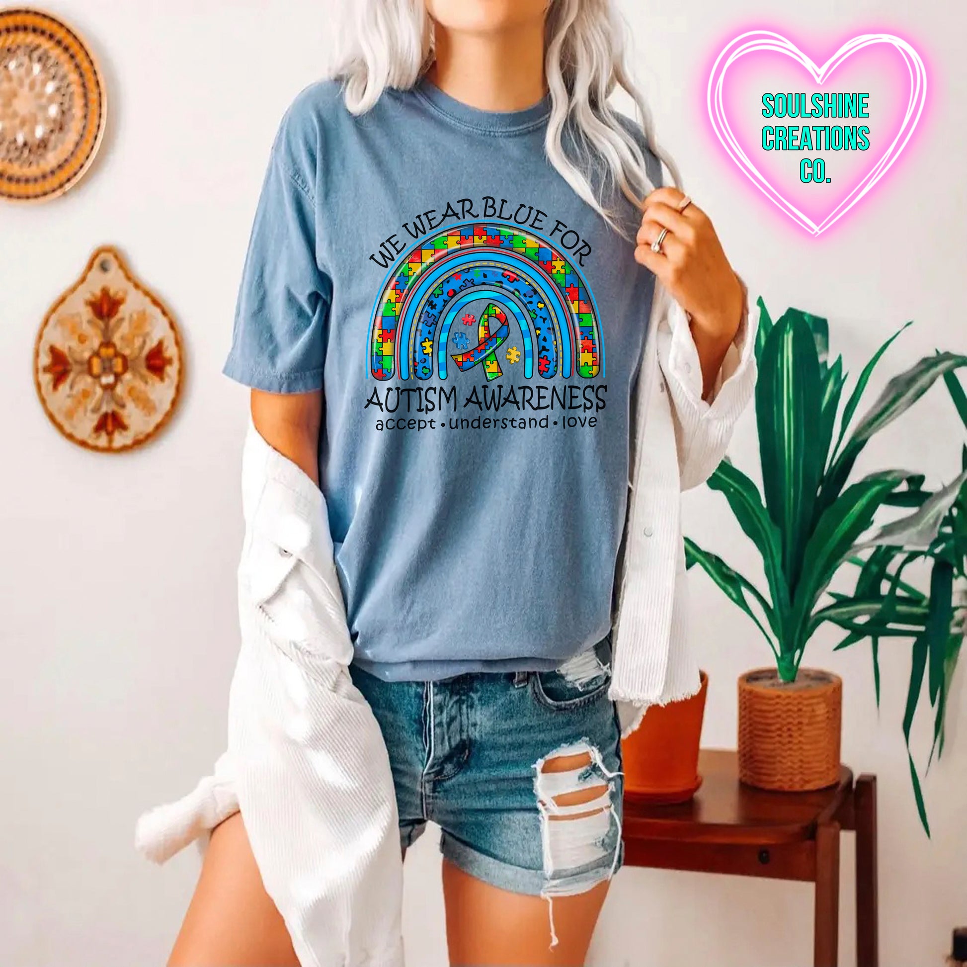 We Wear Blue for Autism Awareness Comfort Color Shirt