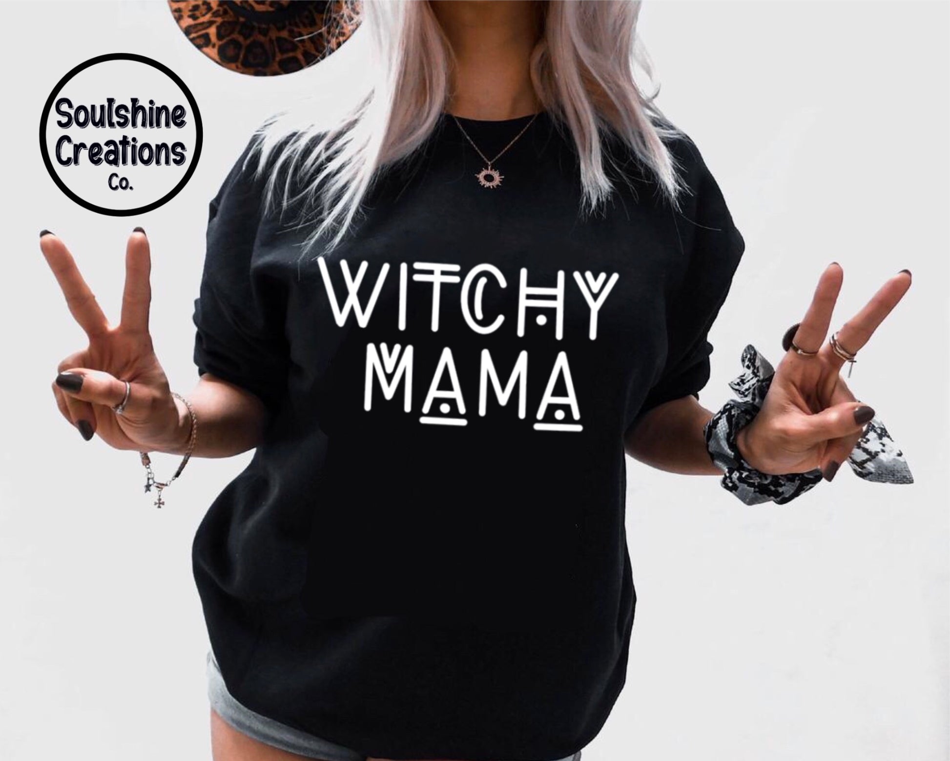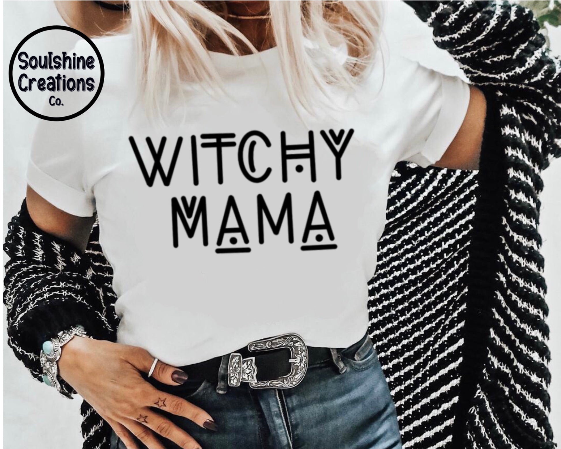 Witchy Mama Shirt- (Color of shirt in photo is Black & White, for reference)